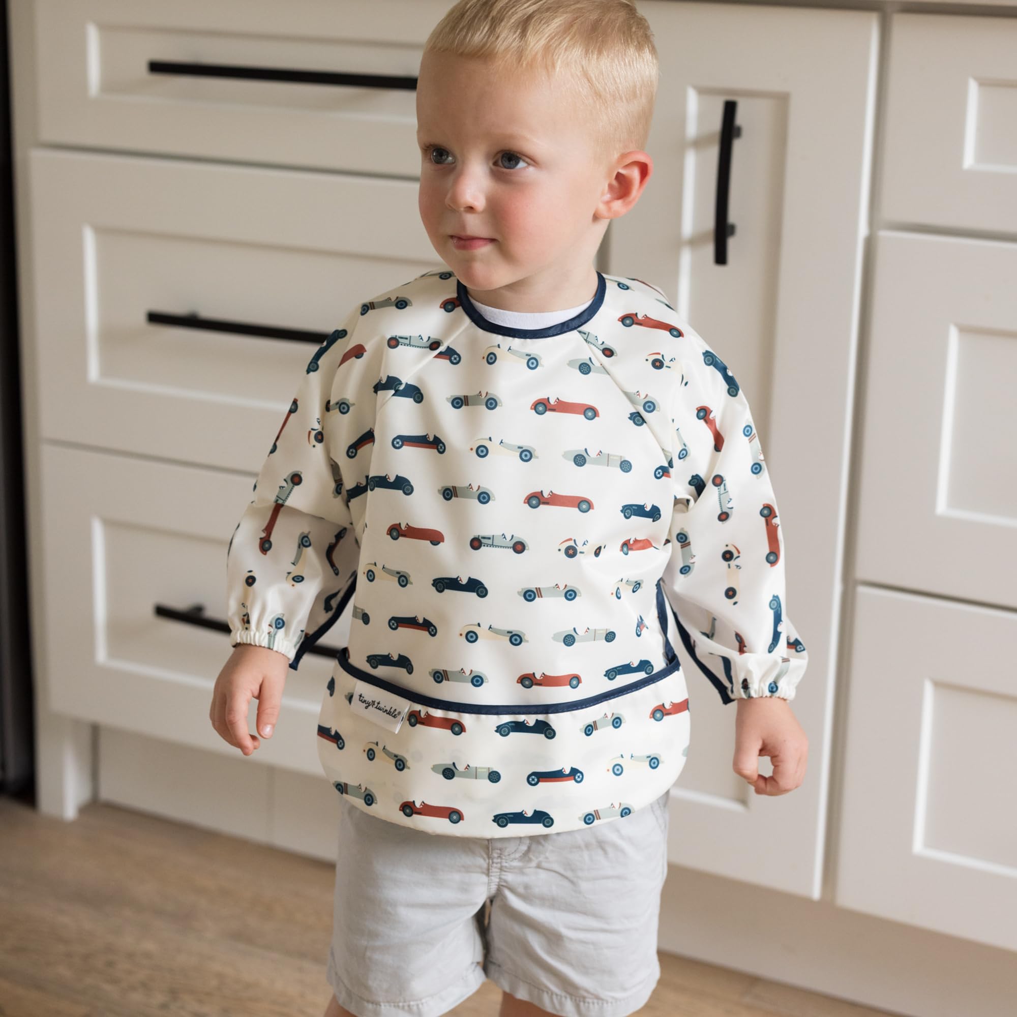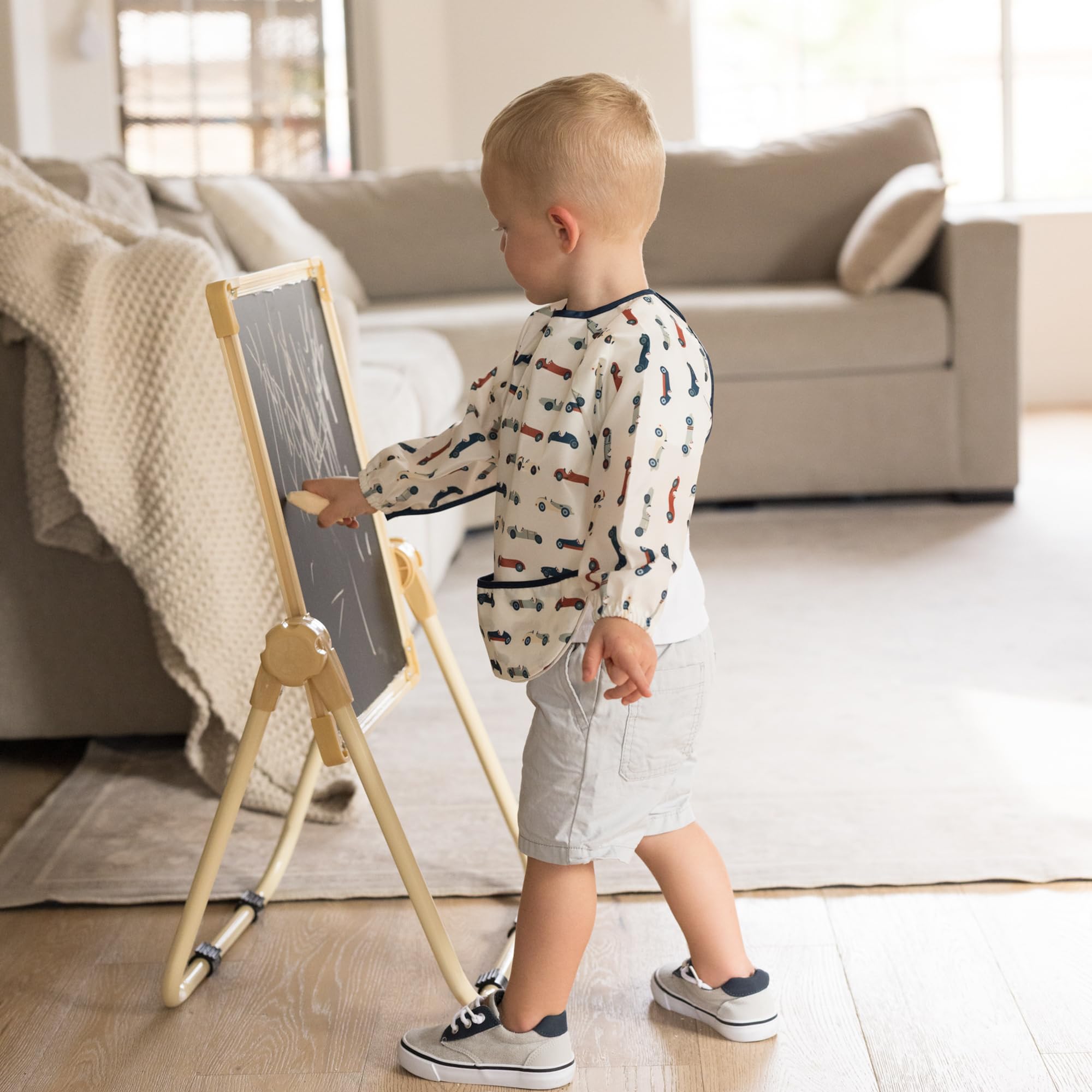FLEXIBLE COMFORT: Our lightweight bib with sleeves moves with your child, ensuring a soft, non-restrictive fit for every activity. Perfect as a baby food bib for mealtime, playtime, and on-the-go adventures.