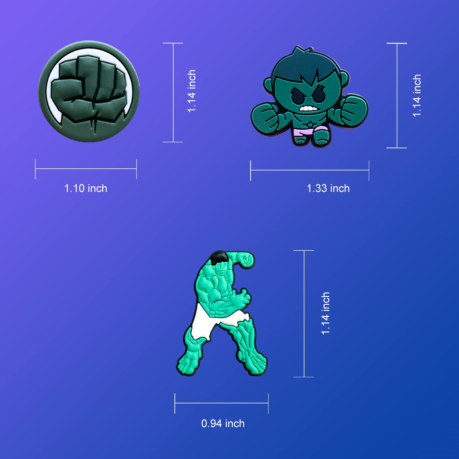 Easy to Use: To install the hero shoes decoration charms, please hold it and insert it from 45 degree angle. To take it off, reach into holes of shoes, use your fingers to push the bottom of the shoes decoration charm slightly till it comes out.