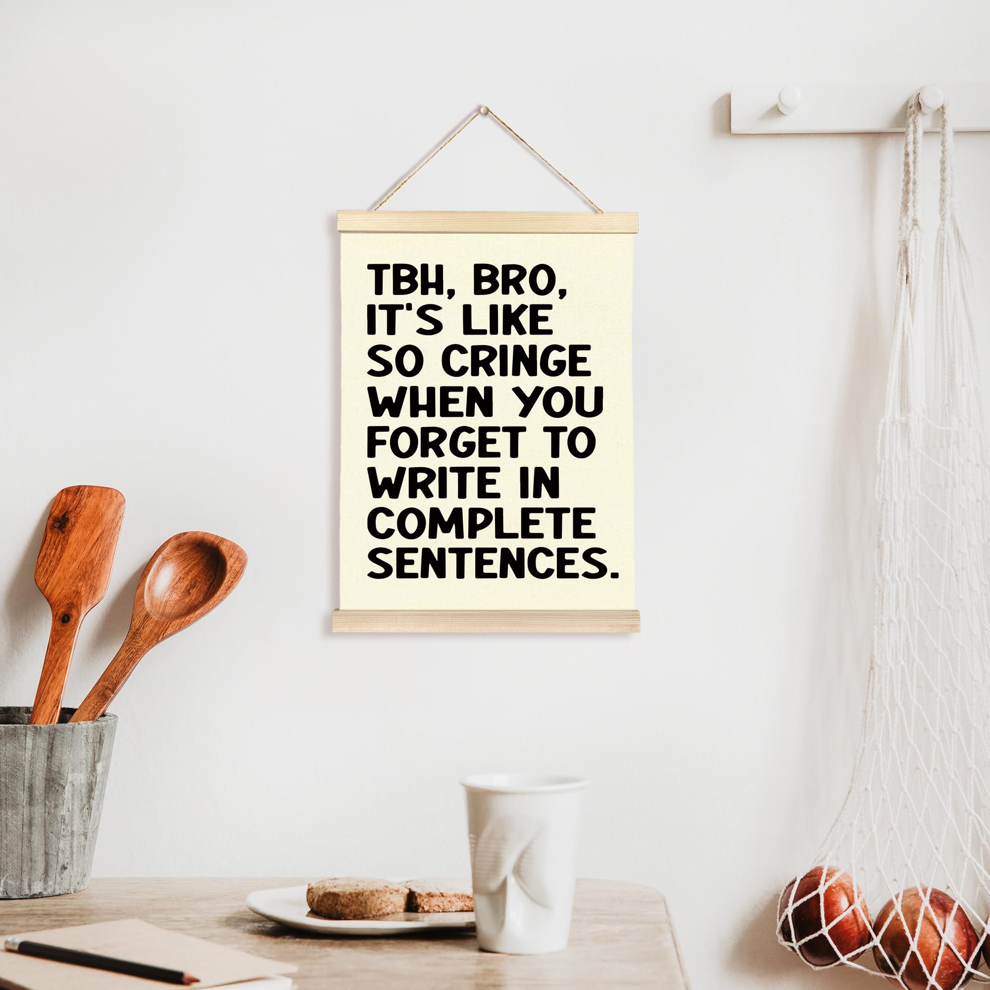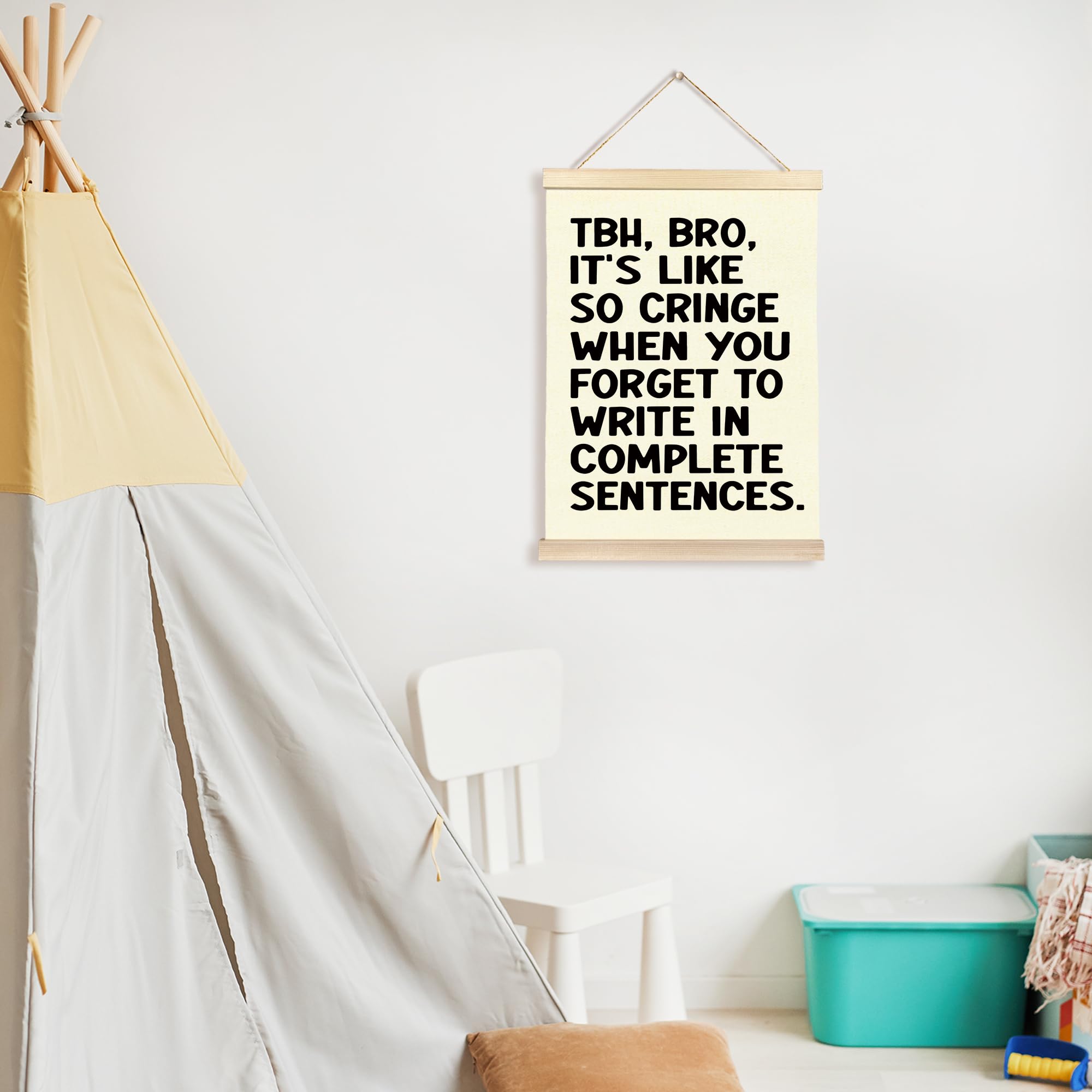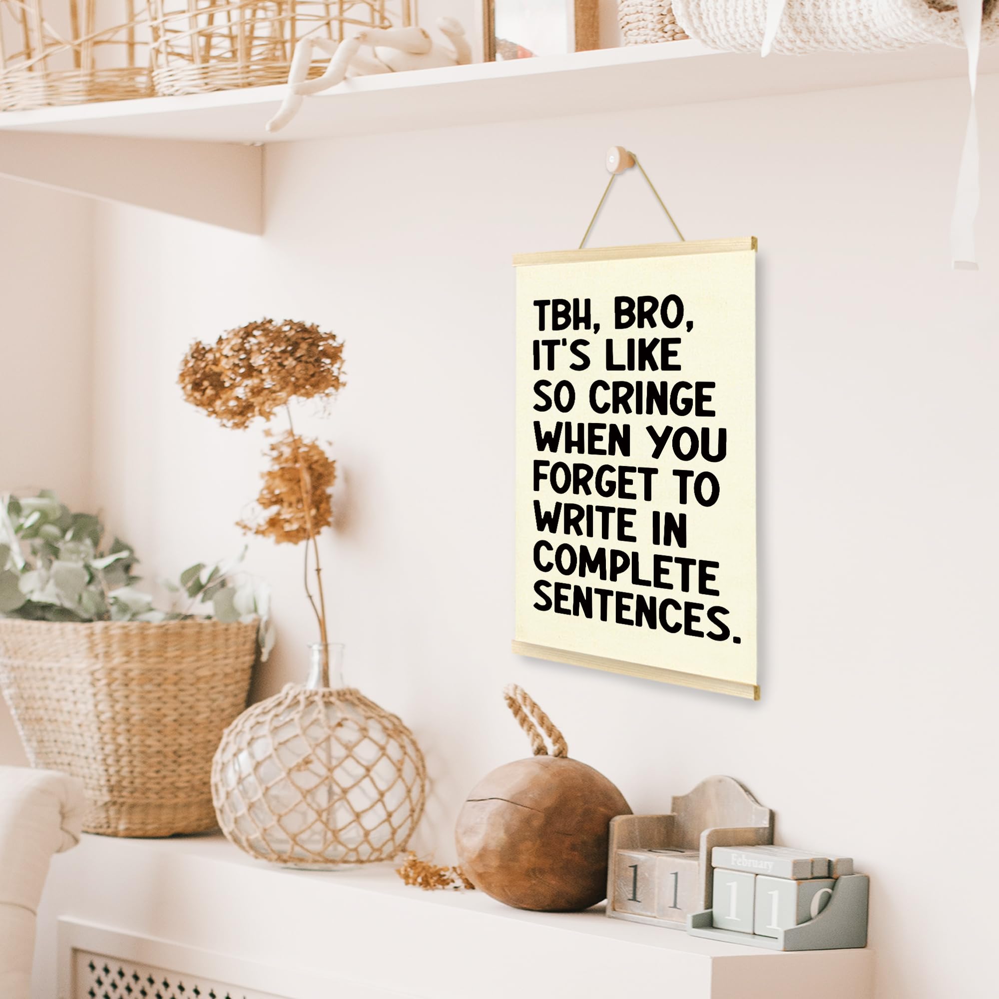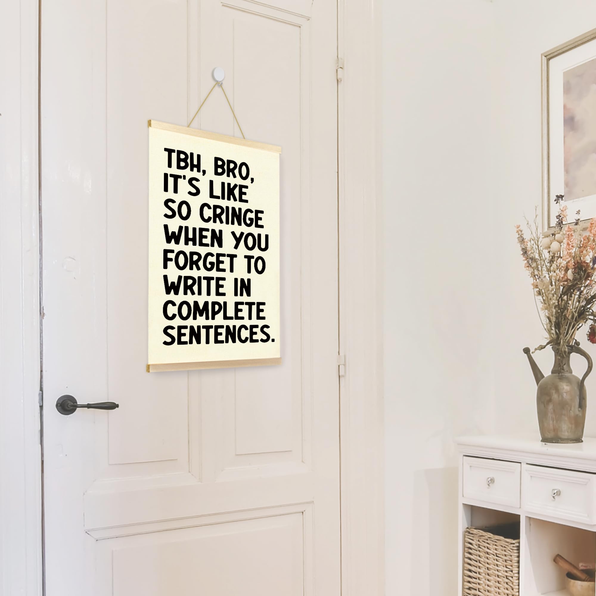 Printed on natural linen fabric with solid wood bars on top and bottom. The wooden frame provides durability, and the linen material enhances the overall aesthetic appeal.