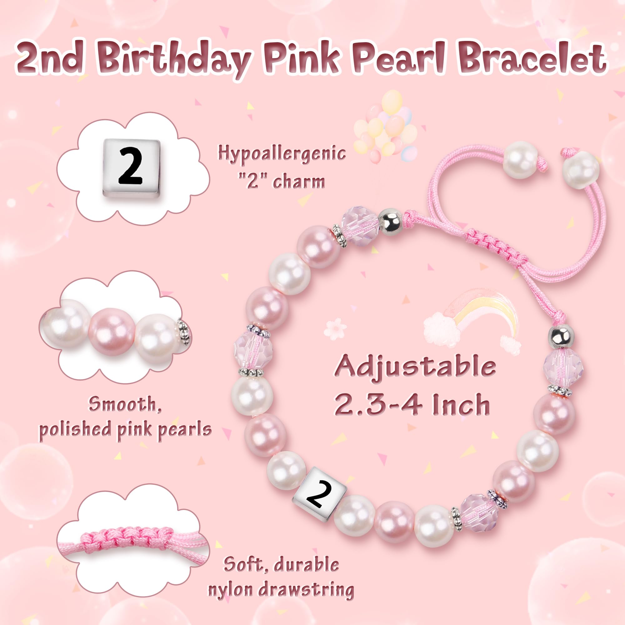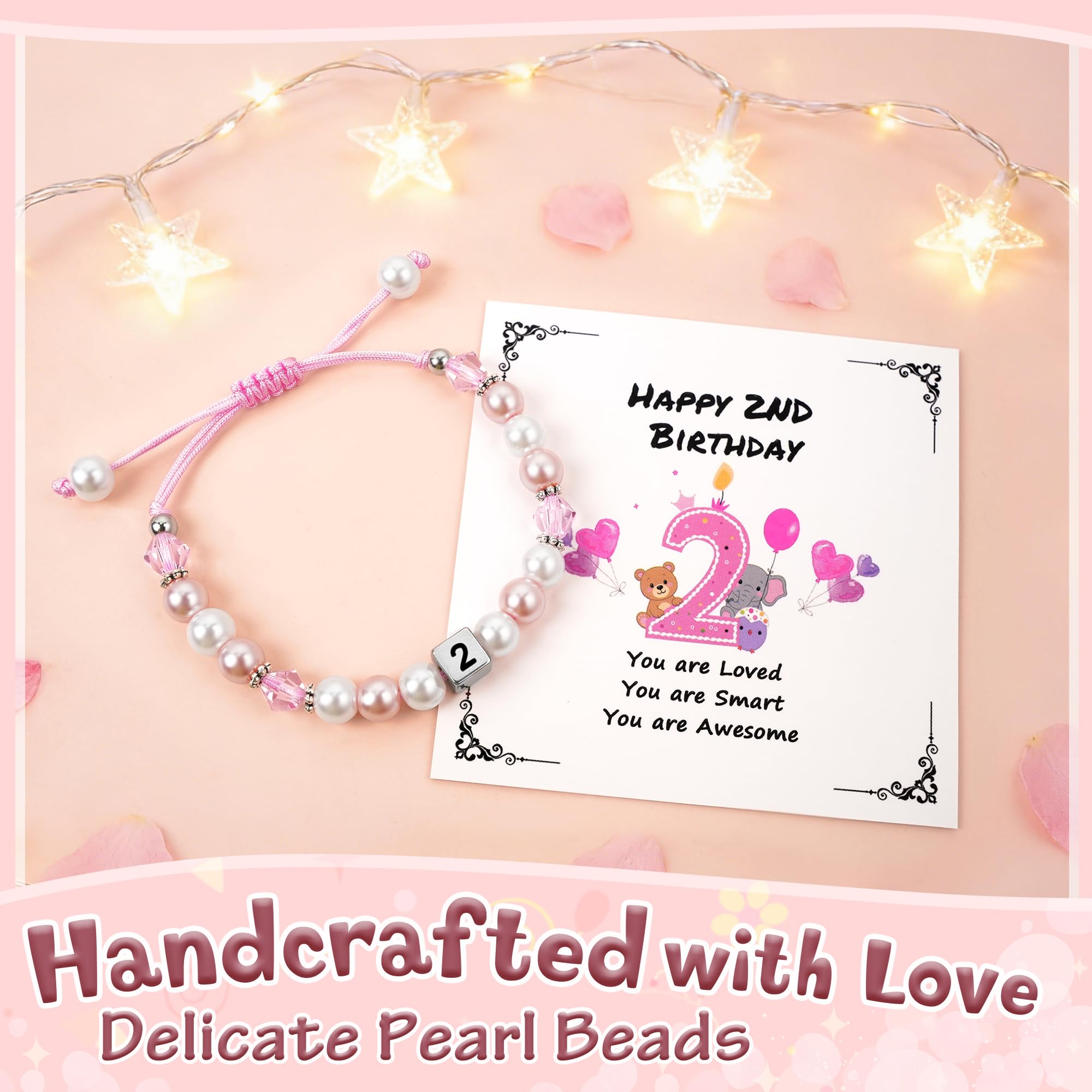 Gift for 2 Year Old Girl: This gorgeous pink bracelet is the perfect accessory to complement her 2nd birthday outfit, adding a sweet touch to any princess-themed 2nd birthday celebration. It will make a wonderful surprise for your little one and serve as a beautiful keepsake of the day she turns two. A fantastic two-year-old birthday gift idea that adds a touch of sparkle to her special day