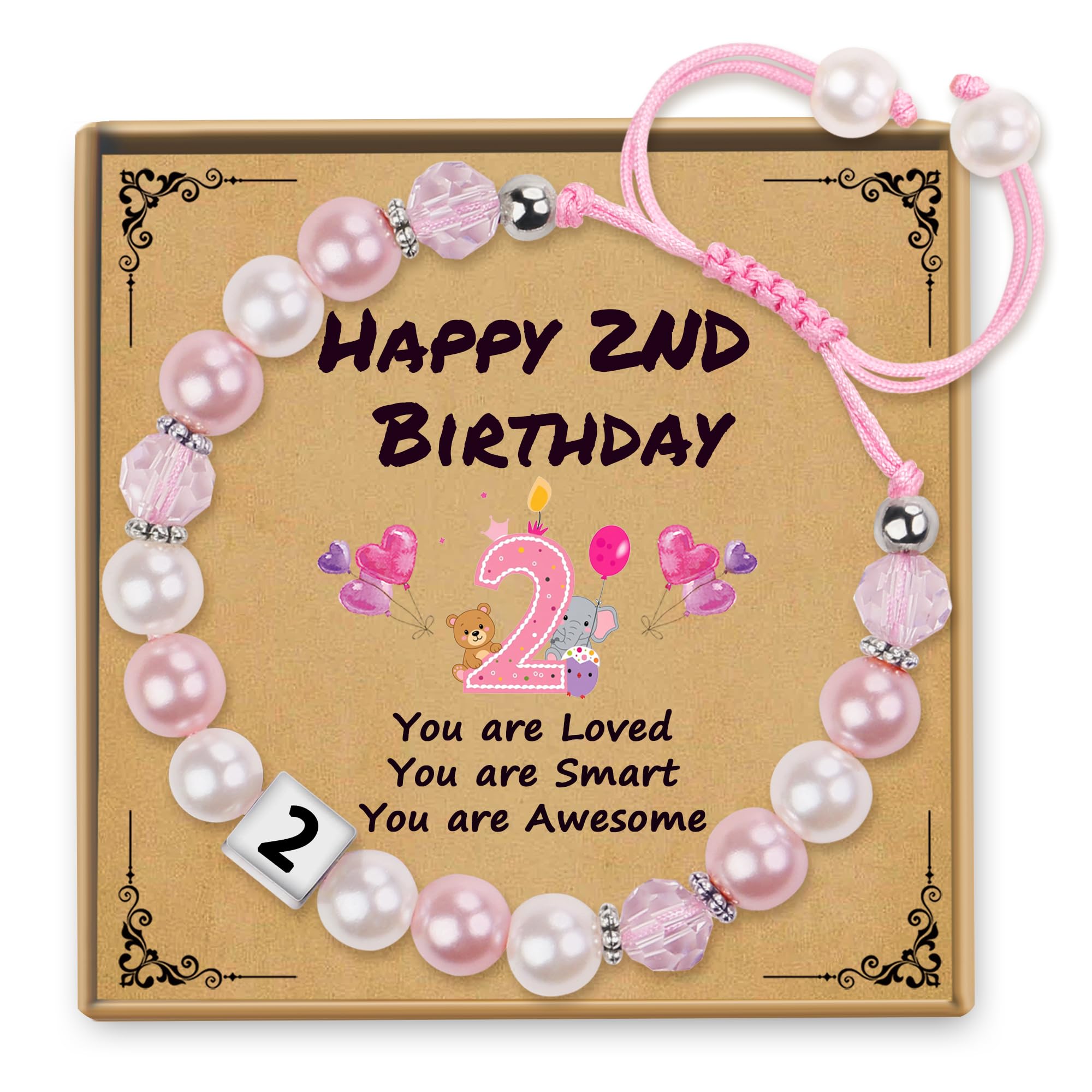 2 Year Old Girl Gifts: This elegant beaded bracelet is more than just an accessory. It’s a beautiful keepsake to mark her second birthday, perfect for birthday photos and her special outfit. Designed specifically as a memorable 2 yr old girl birthday gift, it’s a unique present that shows you care, just like the heartfelt words on her birthday card: You are Loved, You are Smart, You are Awesome