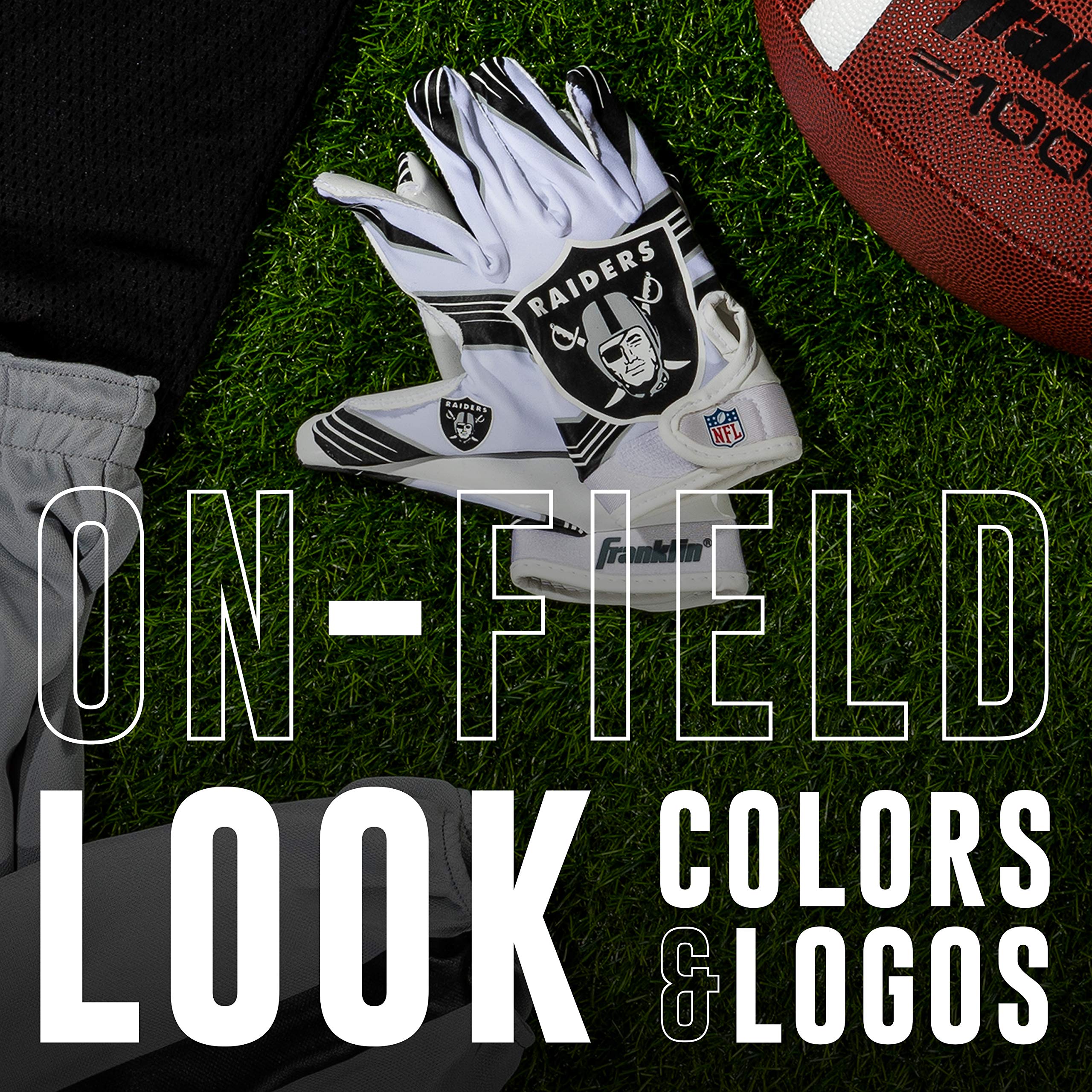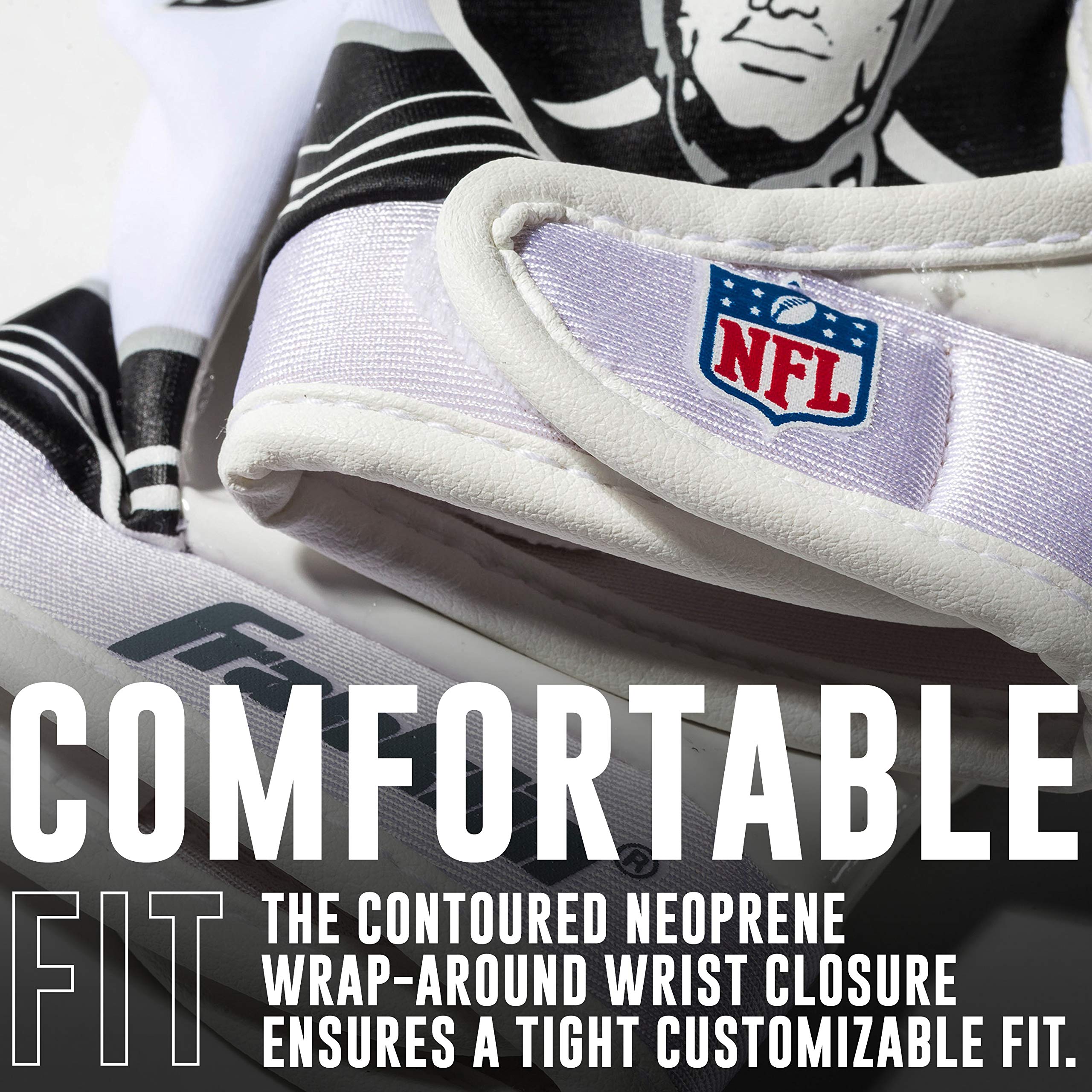 LAS VEGAS RAIDERS RECEIVER GLOVES: These official NFL youth receiver gloves are designed with authentic team logos and colors so kids can look and play like their favorite pros!