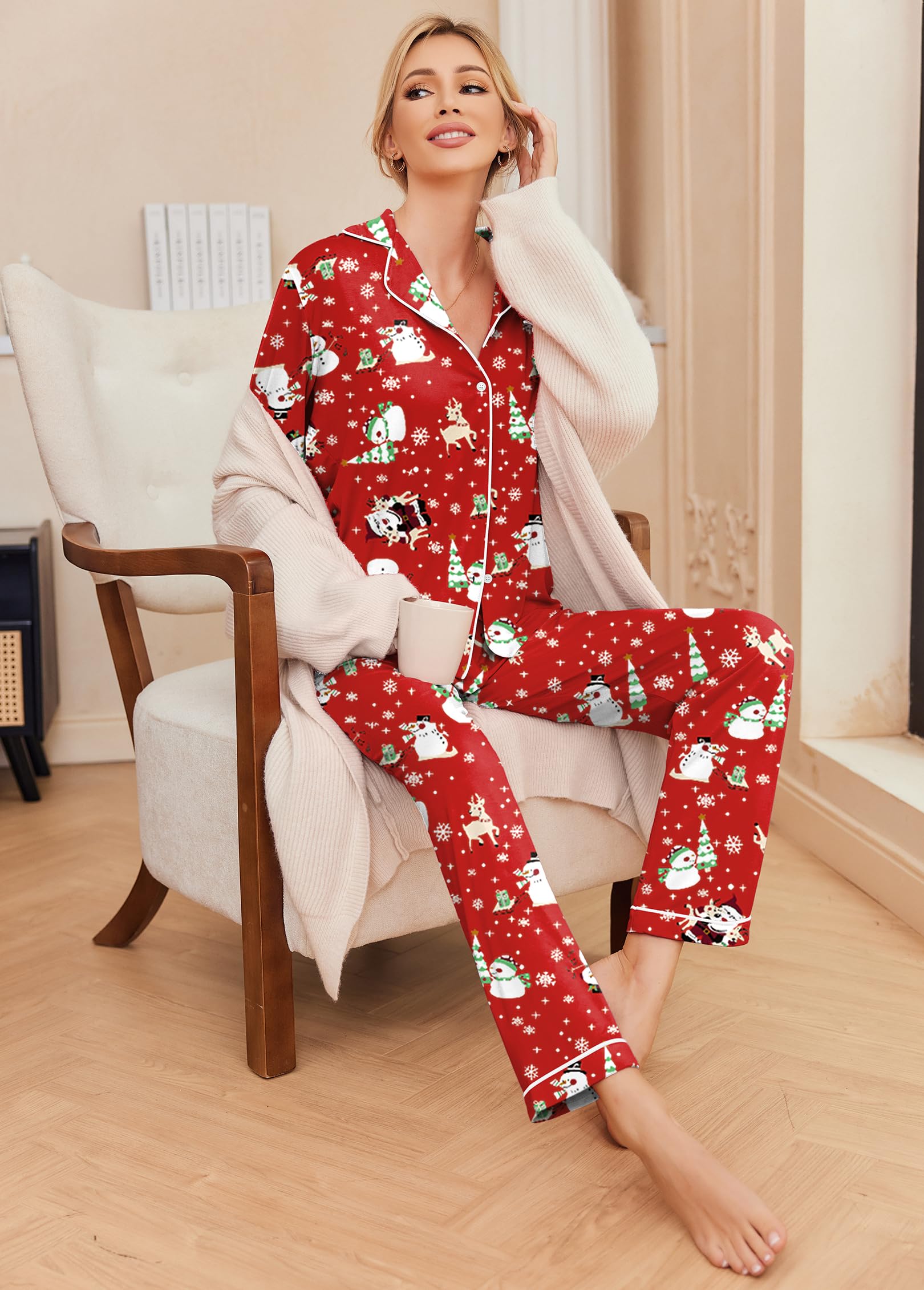 [Two Piece Set]:Two-Piece cute sleepwear pajamas featuring long sleeve top and pants for relaxed fit.This pj set with superior stitching and perfectly-lined hems,classic sleepwear/loungewear style. Breathable and Comfy pajama sets for women