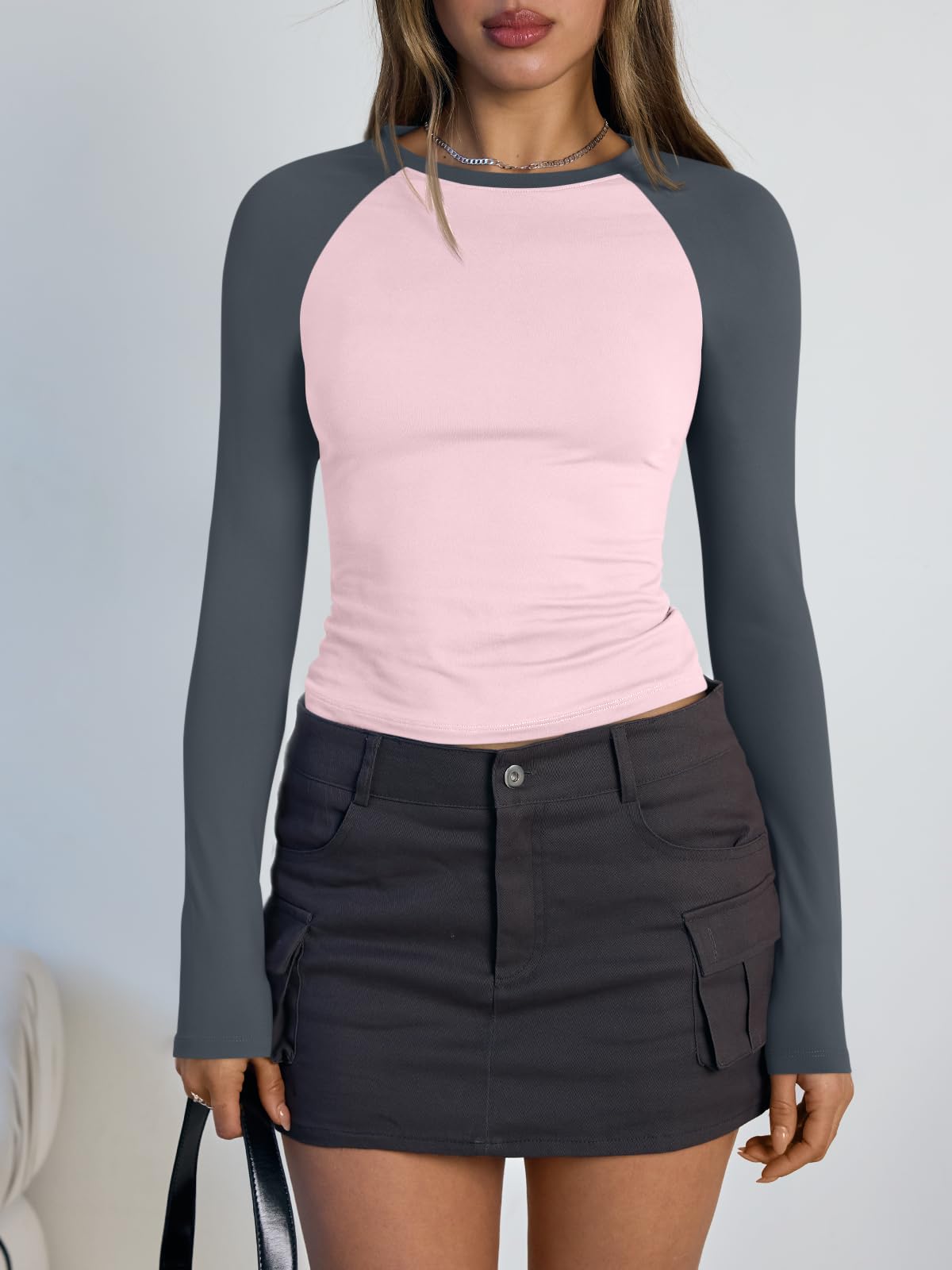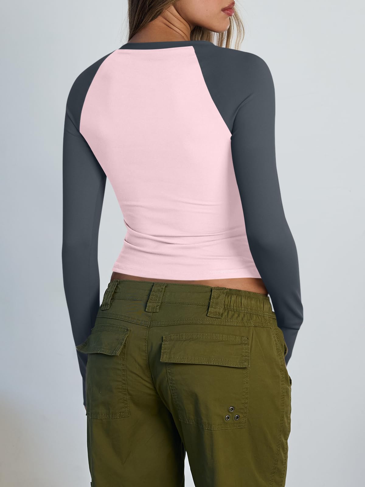 This trendy long-sleeved t shirt will have you looking your best wherever you go. With its perfect fit and cute contrasting neckline and sleeves, this top is the perfect way to stay casual while looking super cute.