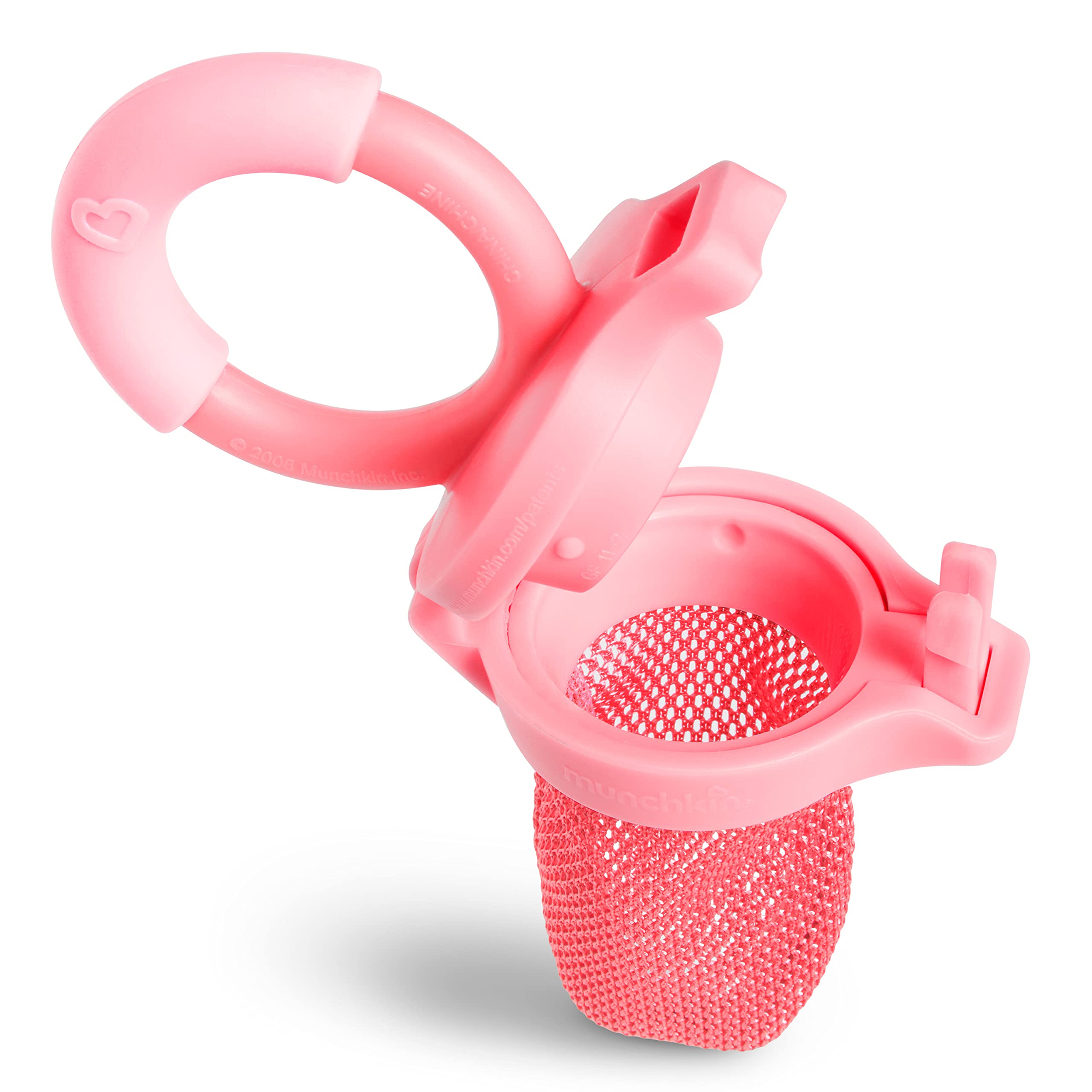 You want what's best for baby, and that means adding fresh fruits, vegetables and purees to the mealtime mix. The Munchkin Fresh Food Feeder allows your little one to enjoy delicious finger foods without giving you cause for concern. With its simple mesh design, this handy teething feeder allows for babies to gnaw on foods safely. Simply place a piece of fruit, vegetable or even meat into the mesh bag and snap it shut. Baby can chew, suck and taste the whole food goodness, with only small, digestible pieces coming through - reducing the risk of choking. It's also a smart alternative to a teething toy. The Fresh Food Feeder features a colorful, easy-grip handle for your little one to hold - making this his first real step toward feeding independence.
