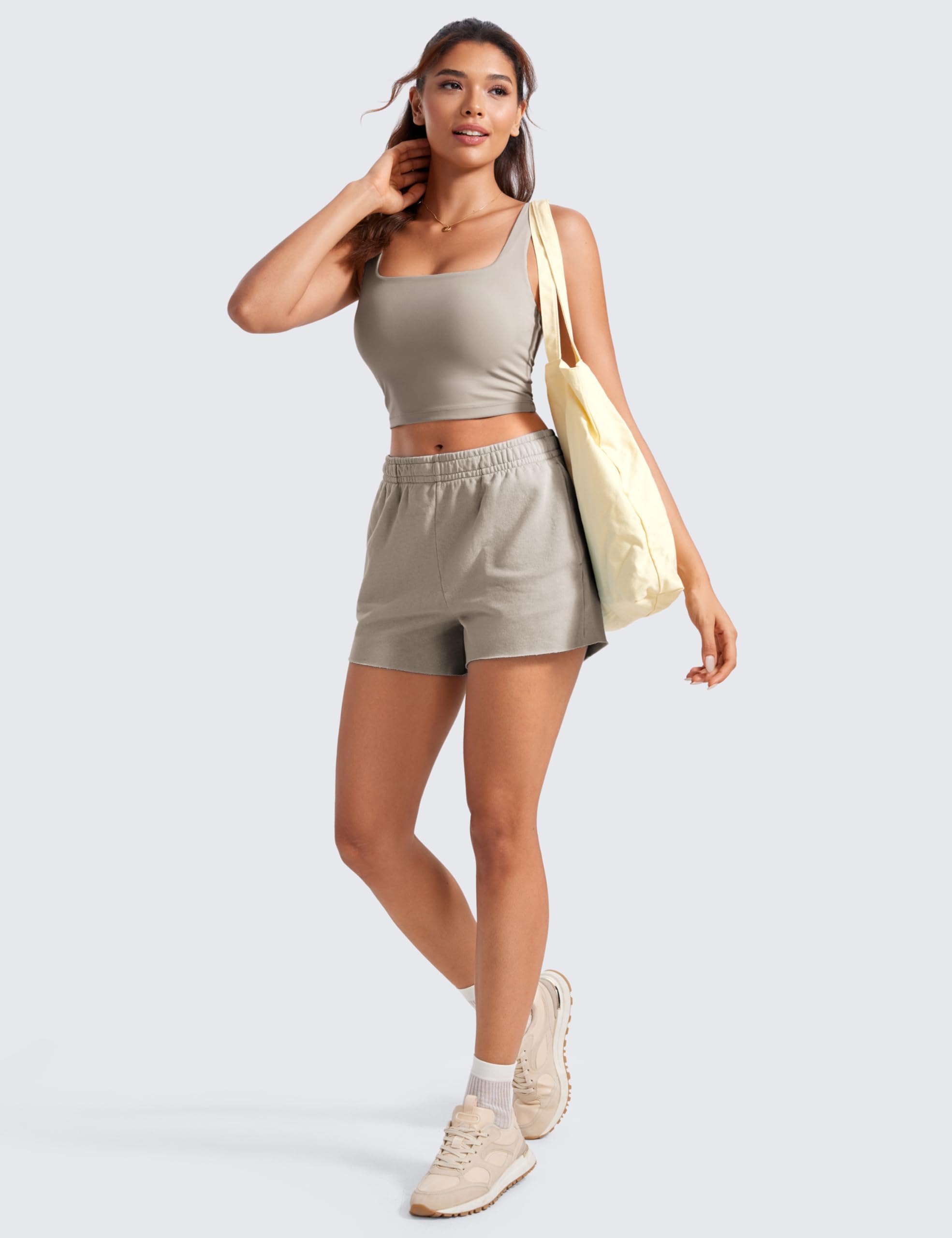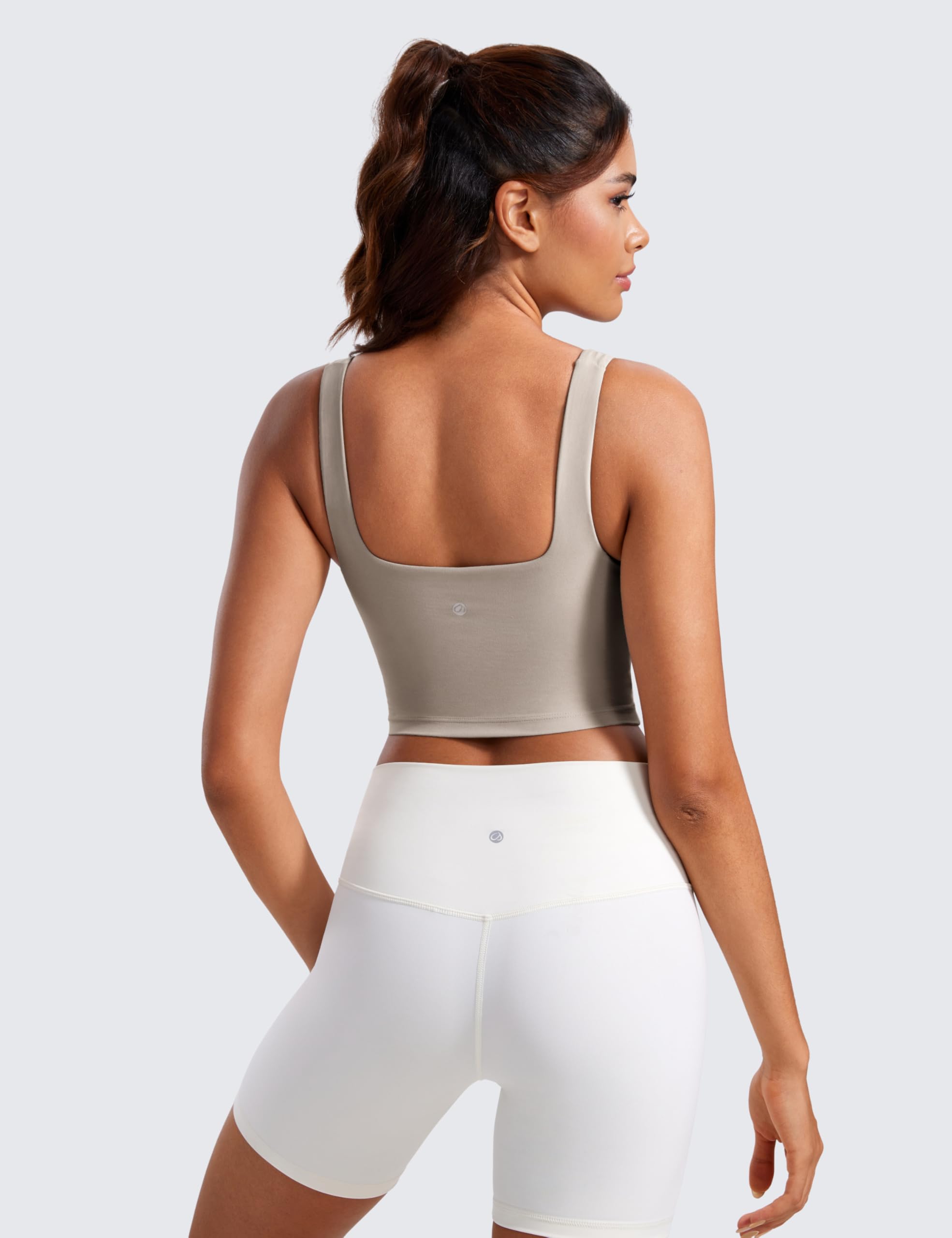 Cropped tank top that sits above the belly button, pairs well with high-waisted pants