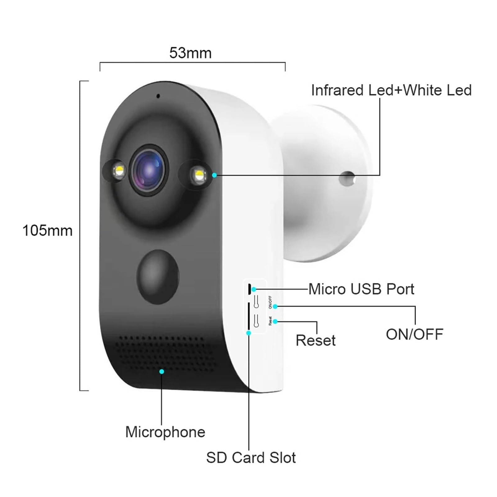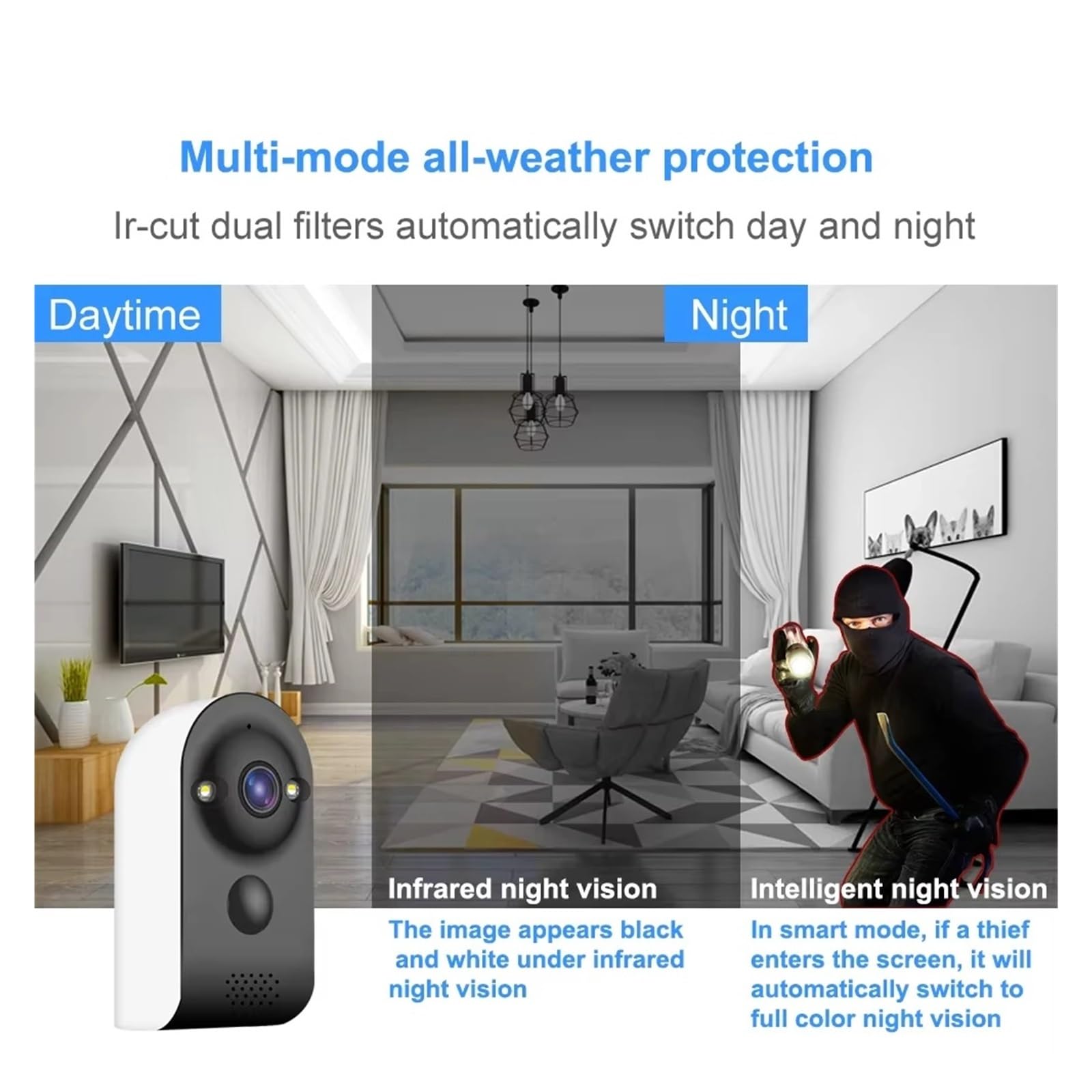 Dual power supply mode + long-lasting battery life, unrestricted installation: Built-in 18650 battery (3.7V 4000mAh), can be used with DC 5V/2A power supply, breaking free from wiring constraints, flexible placement anywhere in the home to meet different power supply needs.