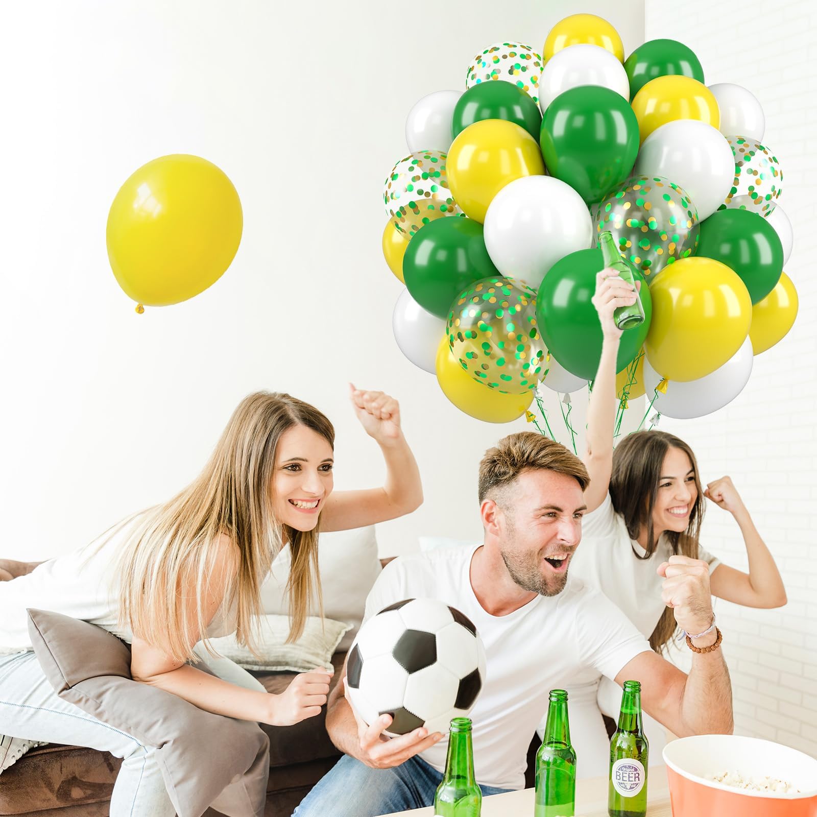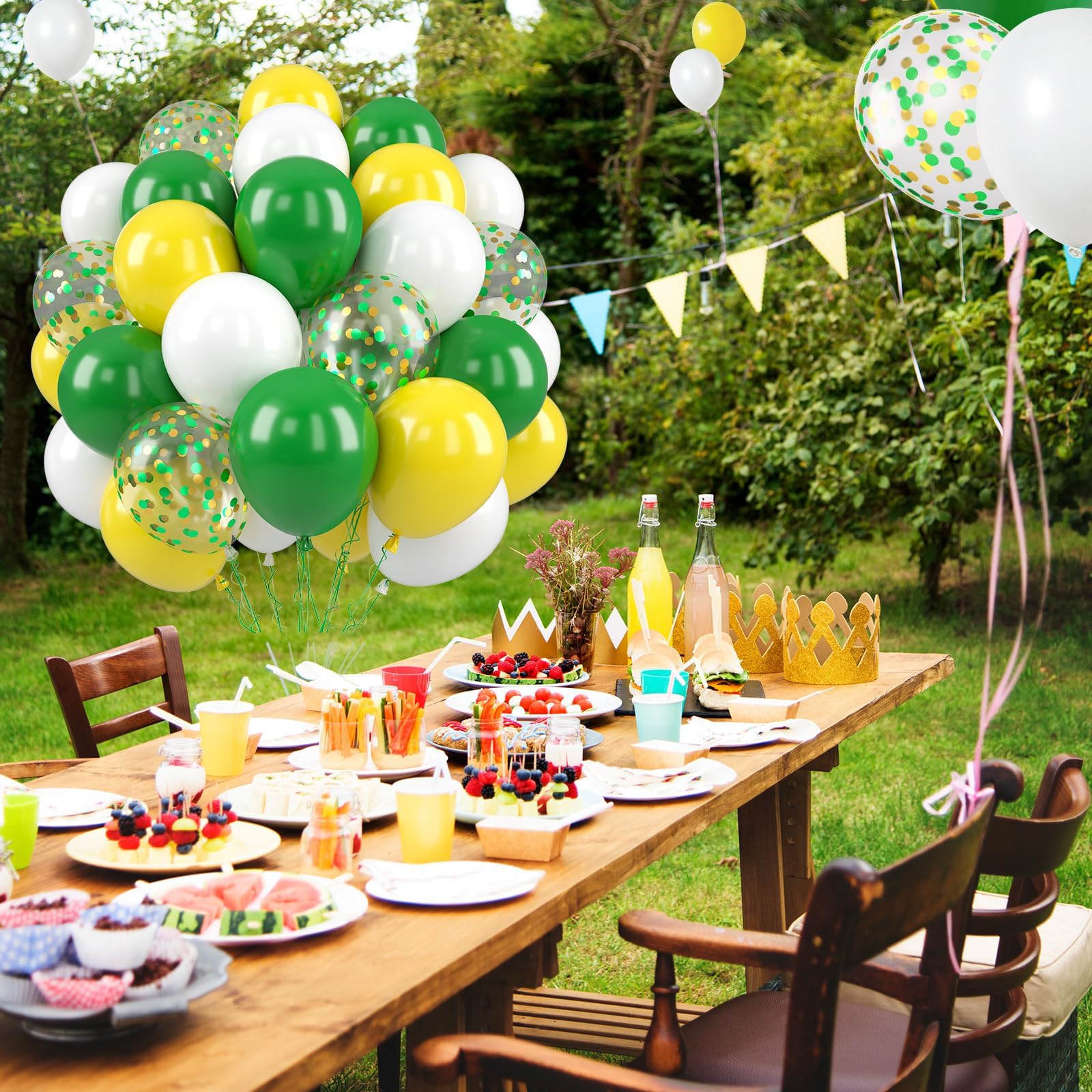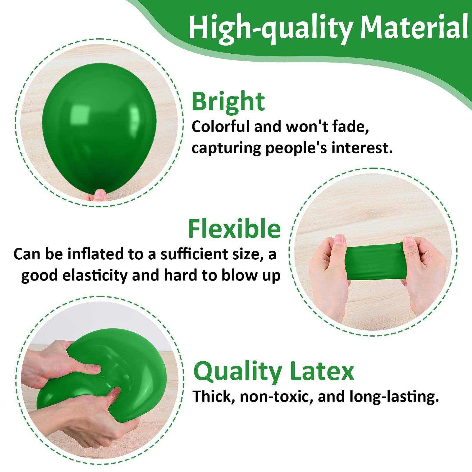 What You Get - The green and yellow balloons include 50 balloons, 4 distinct colors: dark green balloons x 15, white balloons x 15, yellow balloons x 15, confetti green-gold balloons x 5. Accompanying by a 10m ribbon. These striking and captivating hues will beautifully enhance your memorable and enjoyable moments!