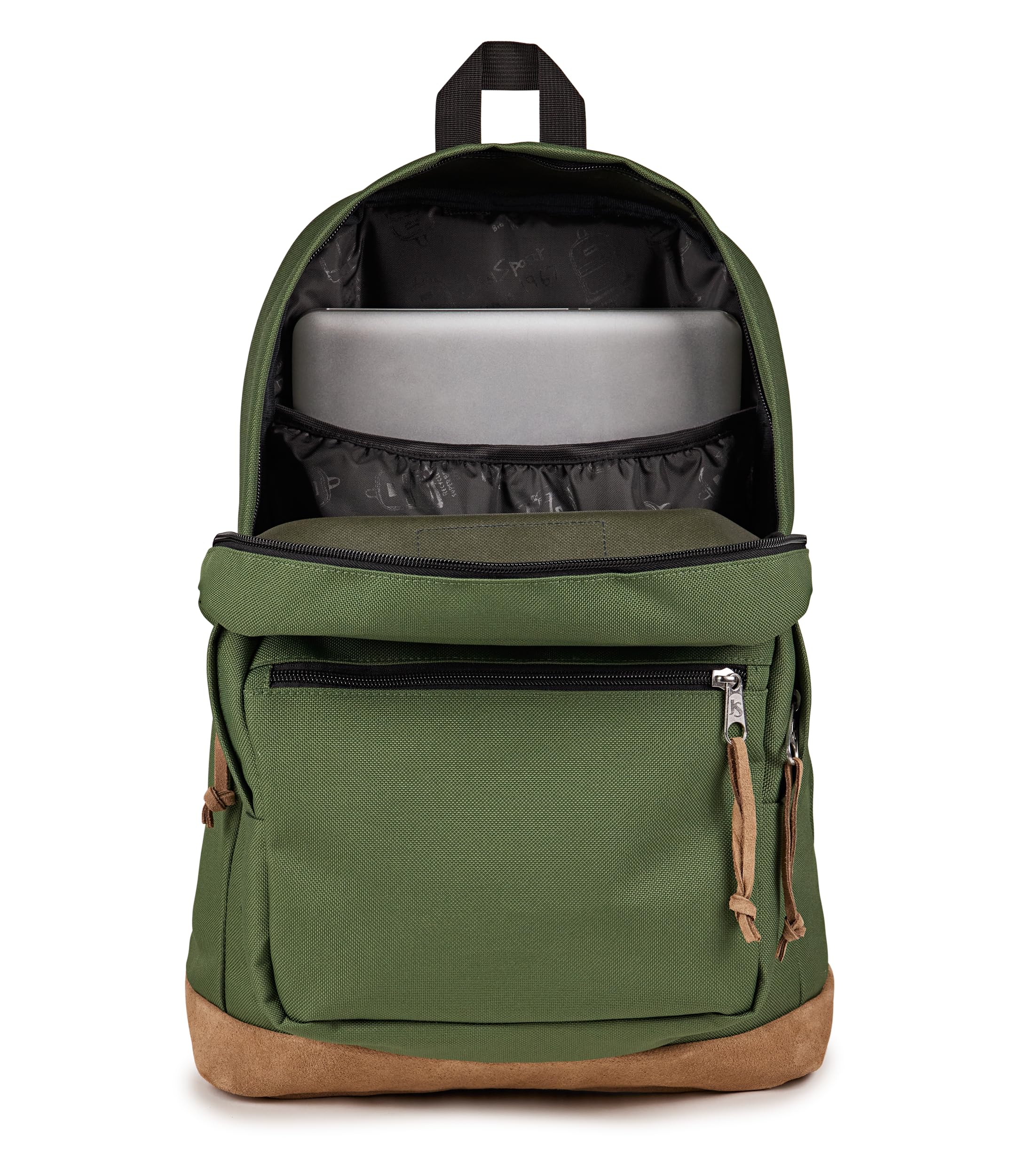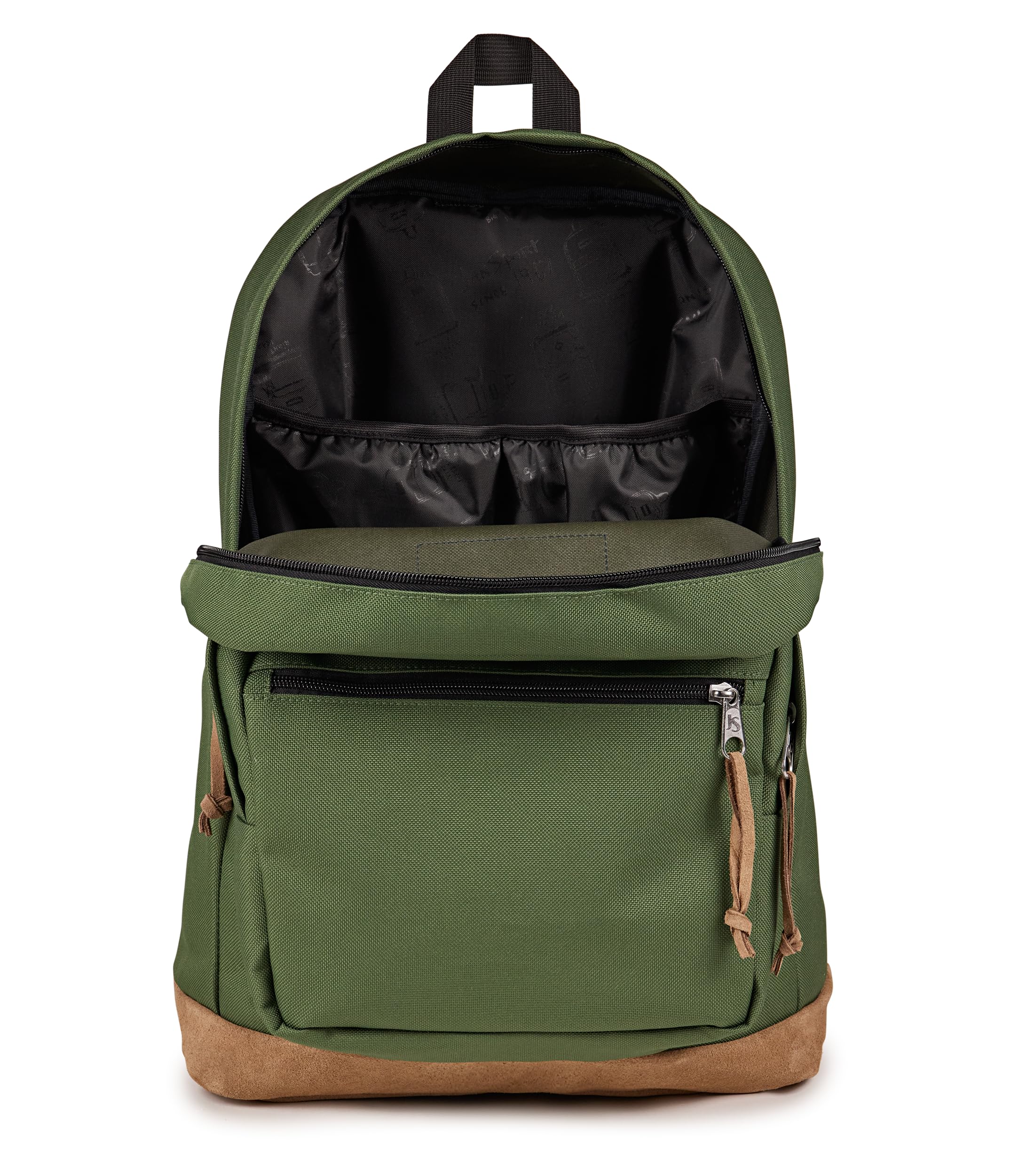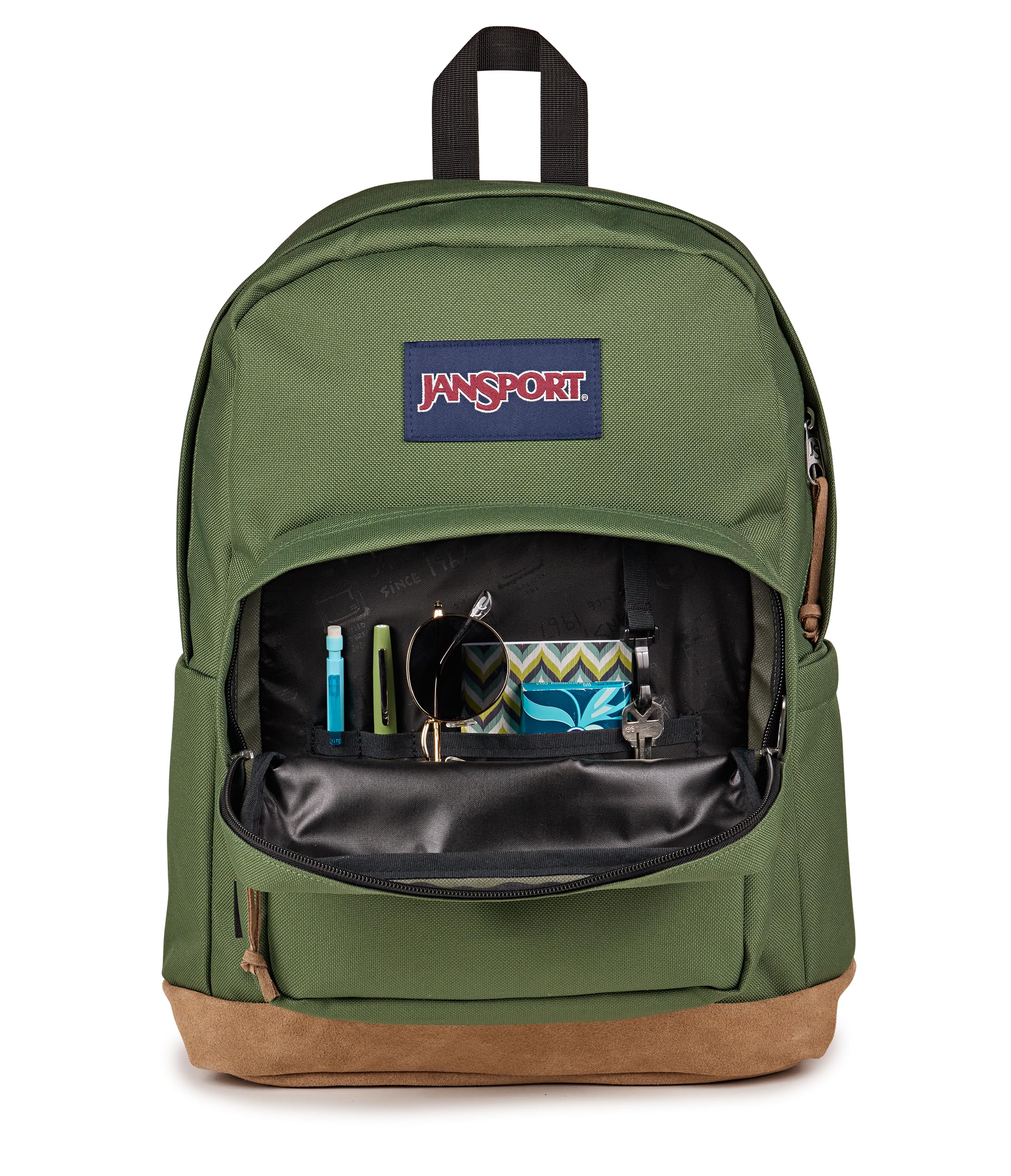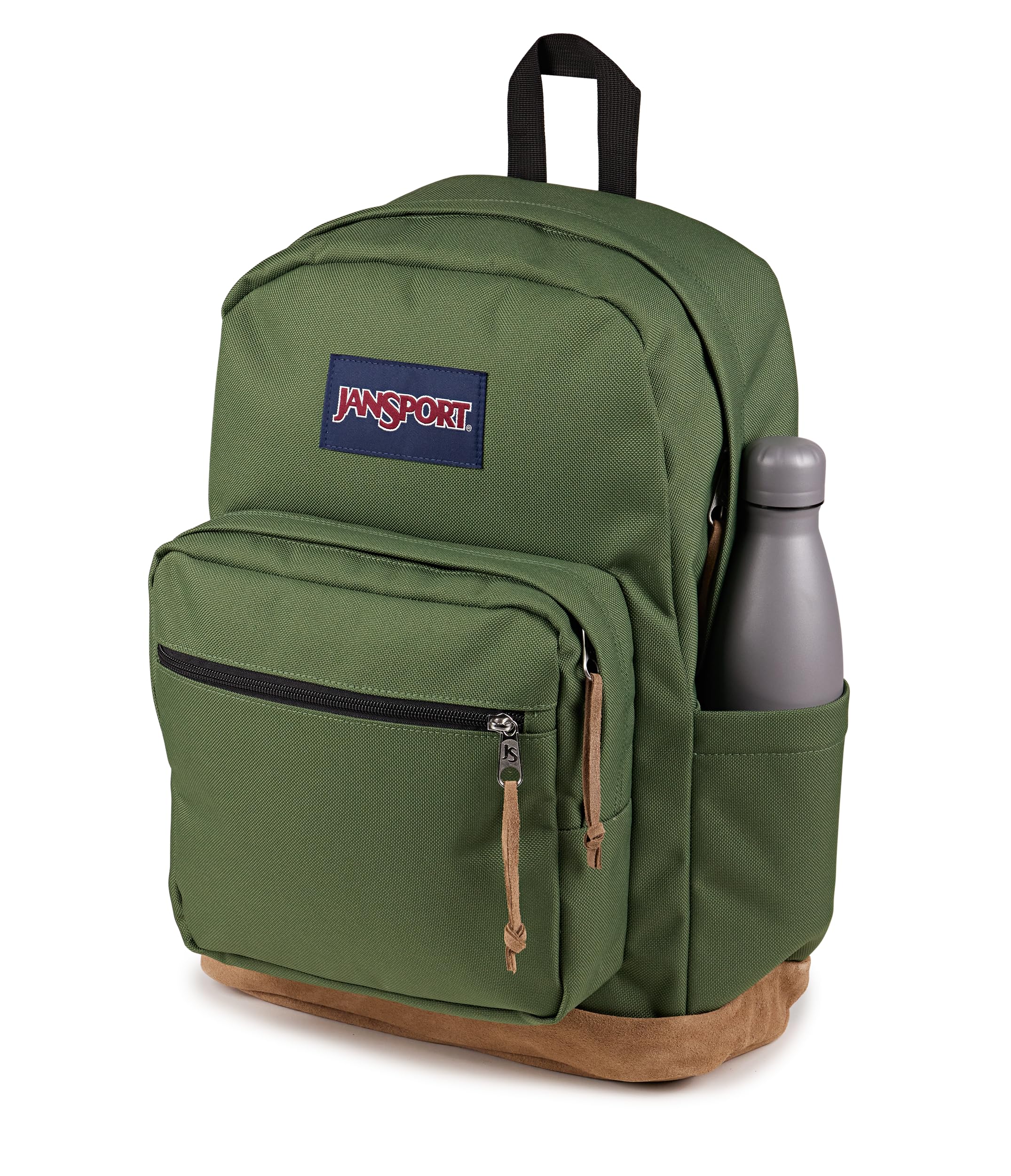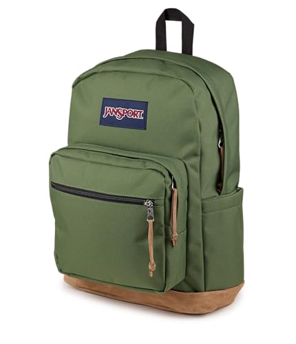 Description The Right Pack backpack combines iconic JanSport design with modern function, making it the go-to backpack for collegiates, professionals, and travelers alike. Built from rugged Cordura fabric and finished with a suede leather bottom, this college backpack stands up to daily wear while keeping a clean, timeless look. Its roomy main compartment fits notebooks, clothes, and travel gear, while a front organizer pocket keeps accessories and chargers within reach. Inside, a padded 15 inch laptop sleeve safely holds your tech and doubles as a tablet compartment, making this the perfect laptop bag for campus or the commute. Adjustable padded shoulder straps and a breathable back panel create all-day comfort, even when carrying heavy loads. A side water bottle pocket keeps hydration close, and durable zippers with suede pulls add to its premium feel. Whether you’re heading to class, catching a flight, or exploring the city, this travel daypack is made to move with you. With lightweight durability, ample storage, and the trusted JanSport quality that’s built to last, the Right Pack delivers style, reliability, and performance for every journey.