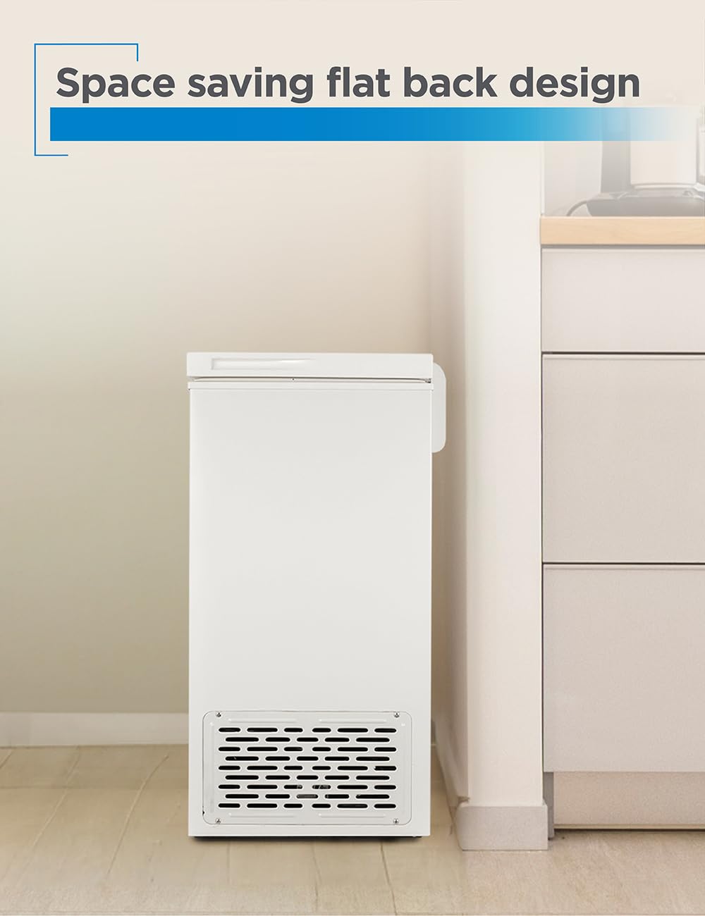Removable Storage Basket: Our compact freezer features a removable storage basket for easy organization of your frozen items. This small freezer chest helps enhance your storage efficiency.