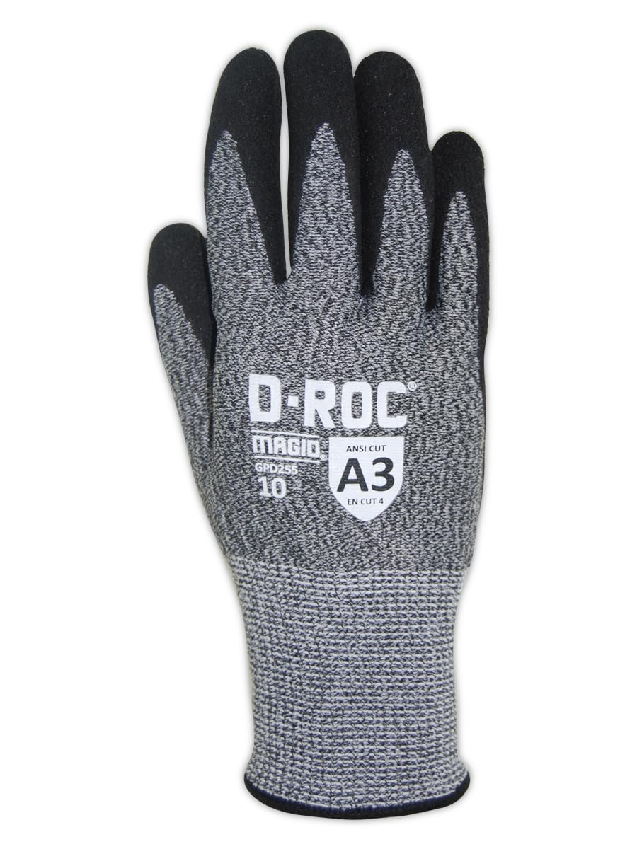MAGID® Griffin Gear® ANSI A3 Hyperon® Blended Sandy Nitrile® Coated Work Gloves deliver basic cut protection at an affordable price. The lightweight work gloves are designed to perform in wet or dry conditions, with Sandy Nitrile® grip technology that delivers a rock-solid hold. The ANSI level A3 cut-resistant gloves feature a breathable 15-gauge Hyperon® blended shell for lightweight performance and cool comfort that lasts. The ultra-flexible gloves deliver superior protection and tactile sensitivity while maintaining enough flexibility to grip small objects. The elasticized cuff keeps the gloves in place and allows for easy on/off to improve compliance. The work gloves are comfortable enough to wear during long-duration jobs and are ideal for tasks where you need a great degree of flexibility along with an enhanced grip. The multi-purpose work gloves can be used in any industry and also deliver ANSI abrasion level 5 protection and ANSI level 2 puncture resistance. ANSI 2016 Cut Level: A3 ANSI Abrasion Level: 5 ANSI Puncture Level: 2 Coating: Sandy Nitrile Gauge: 15 Grip Options: Palm Coat Material: HPPE Blend Material Weight: Lightweight Shell Color: Salt & Pepper Type: Hand Specific Comfortable, lightweight, and durable cut-resistant gloves are critical to maintaining safety in any work environment, and MAGID® uses the most advanced technology, materials, and innovative features to ensure protection from cuts and scratches caused by exposure to sharp edges. ANSI Level 3 Cut Resistance Lightweight Design Sandy Nitrile Coated Palm 360-Degree Protection 12-Pairs Per Package