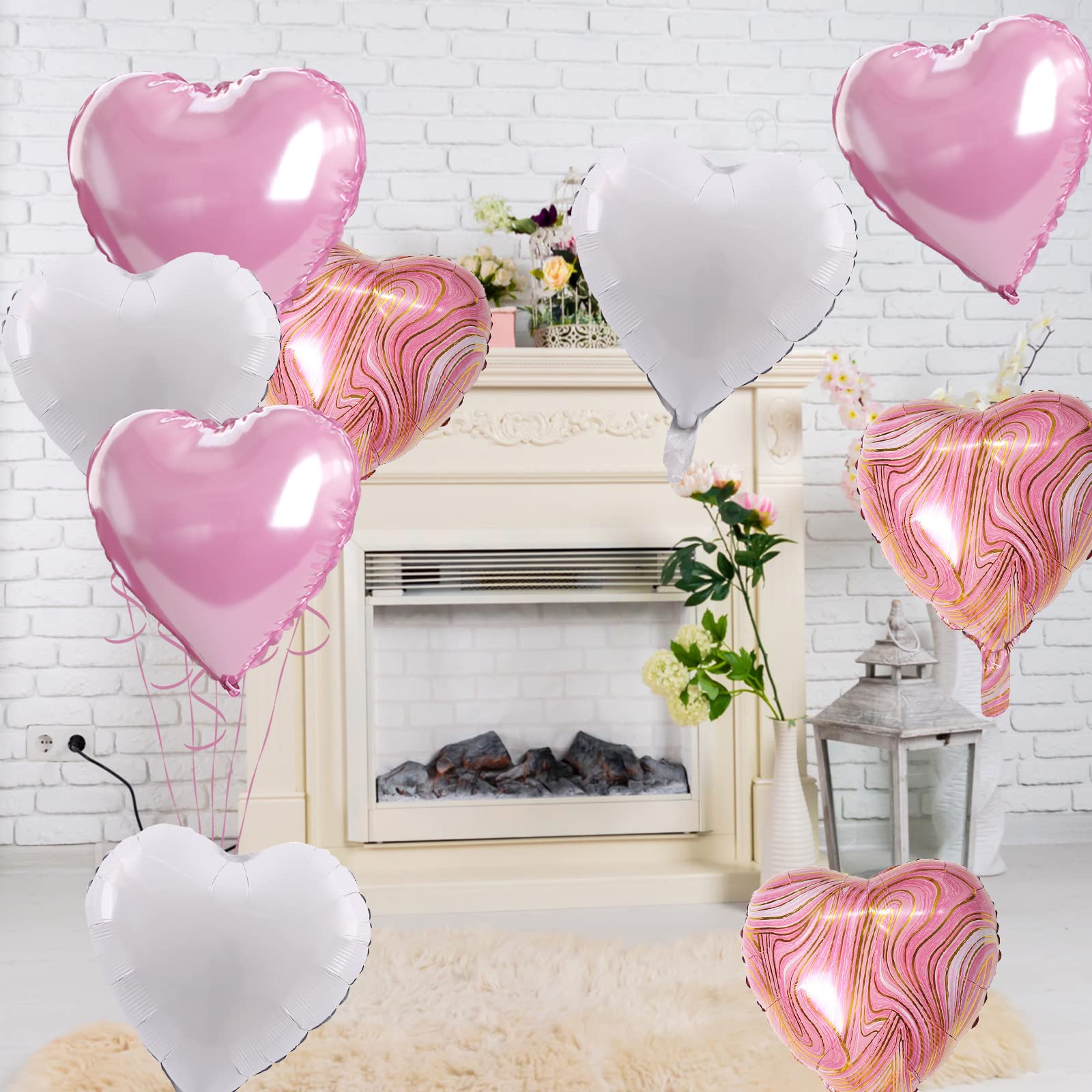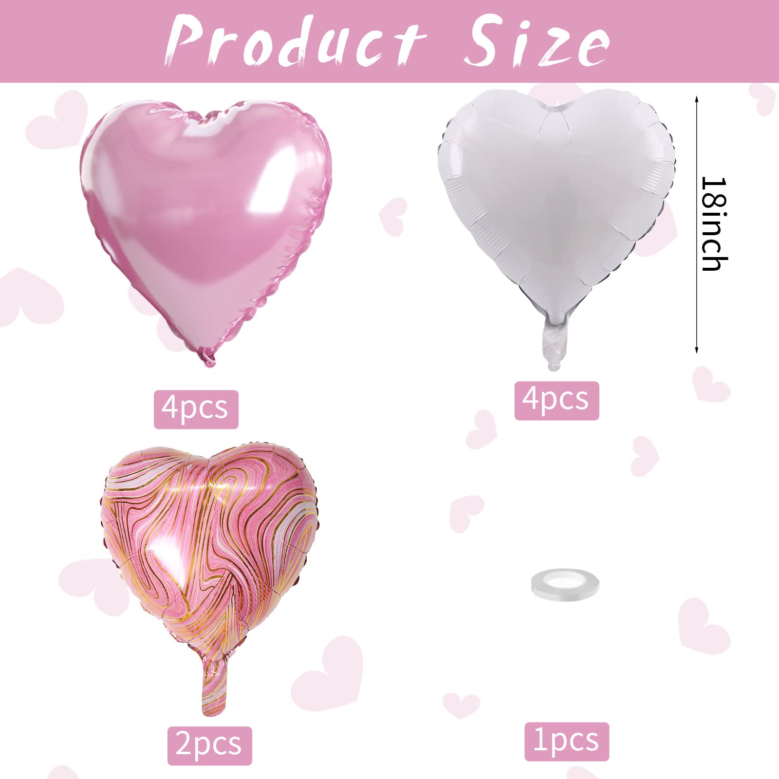 💖 10 PCS Pink White Heart Balloons: Our package contains 4 x 18 inch pink heart balloons, 4 x 18 inch white heart balloons, 2 x 18 inch pink agate heart balloons, 1 x 10m ribbon. The foil heart balloons are specially designed to add a touch of fun and surprise to any party or holiday celebration. With a size of 18 inches, they are the perfect addition to your decorating needs, leaving your guests with an unforgettable smile!