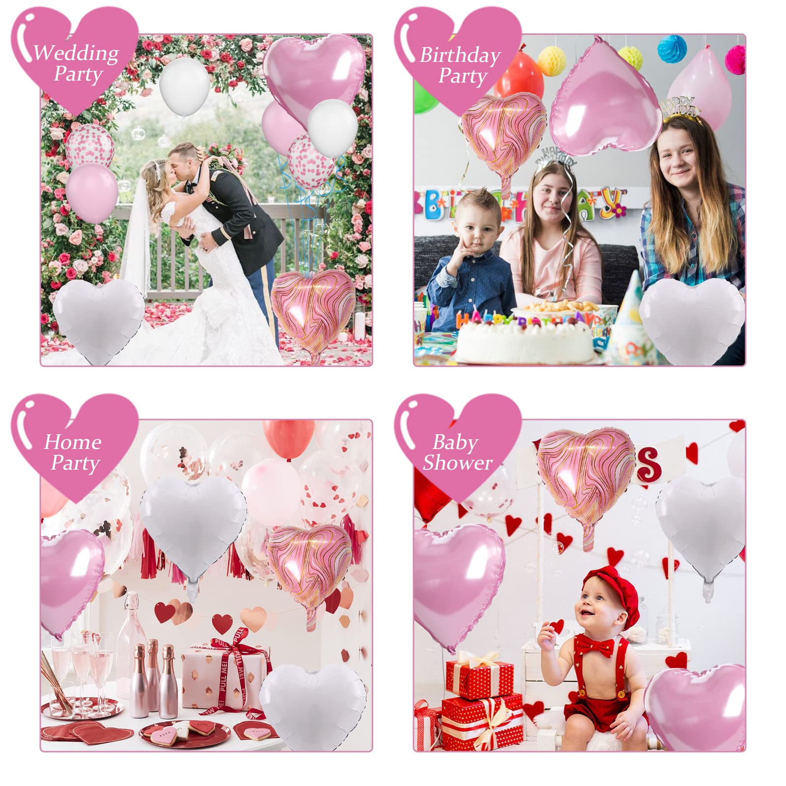 💖 Versatile Decoration: Our pink and white heart balloons are perfect for a wide range of celebrations, including boy's and girl's birthday parties, baby showers, Valentine's Day decorations, wedding parties, bridal showers, princess parties, anniversaries, and more. They are perfect for balloon bouquets, home and table decor, wedding aisle decoration, photo backgrounds, party supplies, and other events.