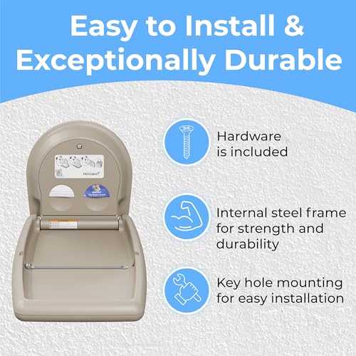 Superior Strength and Durability: This plastic baby changing station is crafted with an internal steel frame and durable polypropylene plastic, ensuring longevity and resilience in high-traffic areas.