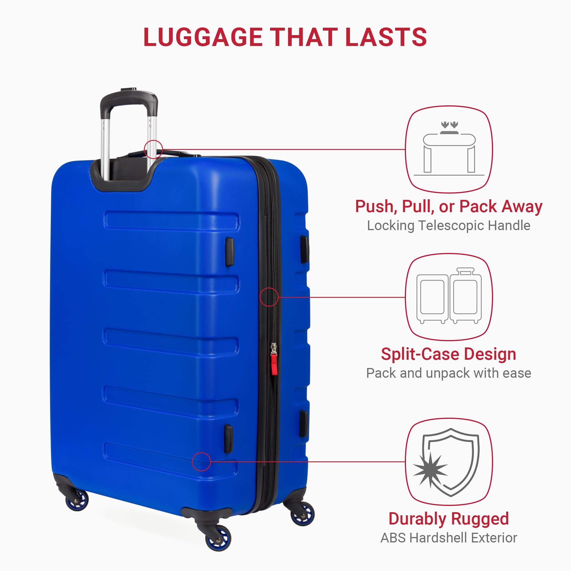 Description SwissGear 7366 Hardside Expandable Luggage with Spinner Wheels is the perfect bag for your next trip. This 27-inch suitcase is made of durable ABS/PC and includes co-molded lift handle(s) with soft rubber hand grips for easy maneuverability. The split-case design expands for additional packing space and internal pockets keep you organized. The 8 360-degree multi-directional spinner wheels and a premium, push-button steel locking telescopic handle make it easy to navigate through the airport. With outside dimensions of 30.75 x 20.5 x 12.25 inches including wheels and handles, this suitcase offers 27.25 x 19 x 12.25 inches of packing space. This hardside luggage is perfect for those who need a lightweight and durable suitcase for their travels. The hardshell exterior is designed to protect your belongings from the wear and tear of travel, while the spinner wheels make it easy to move around. The telescopic handle is designed to be comfortable and easy to use, and internal pockets help you stay organized. Plus, this suitcase comes with a 10-year warranty against defects in materials and workmanship.