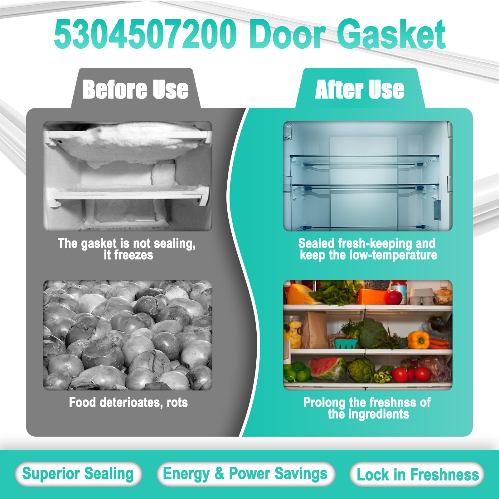 [Great Sealing, Keep in Low-temperature ] Our gasket 5304507200 uses thicken magnetic strips, resistant to bending, strong suction for effective sealing and functions the same as original OEM-branded parts, but quality seal better than OEM. Perfect insulates the outside air and creates a low-temperature environment to keep your food fresh. You no longer need to worry about food being oxidized or contaminated, 5304507200 freezer door seal will guard the deliciousness for you.