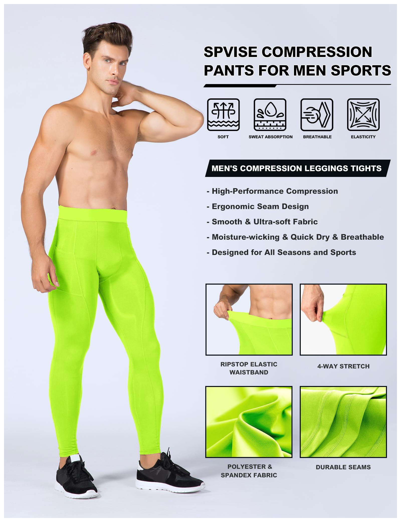 Description SPVISE Men's Compression Pants Tights Leggings Running Athletic Workout Sports Football Basketball Tights Winter Base Layer Bottoms for Cold Weather ➊ Tight-fitting active compression pants men with pockets designed for men. Layering is essential to ward off the cold. Stay comfortable while outside or in bed as a pajama.. ➋ Workout Compression Shirts & Athletic Long Sleeve Shirts & Cool Dry Compression Pants Shorts & Active Spandex Sportwear & Athletic Undershirt Gear Shirt.  Advantages Of Our Compression Leggings for Men ✔ Smooth and ultra-soft: Mens leggings with polyeater & spandex quality material. Keeps you feel comfortable throughout the day. ✔ Moisture Wicking and Breathability: Mens compression tights pants use quick drying light weight fabrics, will help you keep dry and warm all day. ✔ Great Flexibility For Activities: Compression workout pants men is made of 4-way stretch to enhance freedom of movement. ✔ Designed for Many occasions: Our men compression pants with pockets are perfect for winter running, cycling, mountain hiking, football, basketball, ice hockey, yoga, skiing or other outdoor sports. Quick Dry Compression Tights for Football Details: ✿ Material: 85% Polyester, 15% Spandex. ✿ Design: Ultra-soft, compression fit, smooth, comfortable. ✿ Suitable for: Boys, men. ✿ Seasons: Spring, summer, autumn, fall, winter. ✿ Versatile Use: Suitable for indoor and outdoor activities. ✿ Special Gifts: For husbands, family, or friends.  Pack ◆ Packing: 1 Pack athletic leggings for men ◆ Care Instructions: Machine wash and hand wash