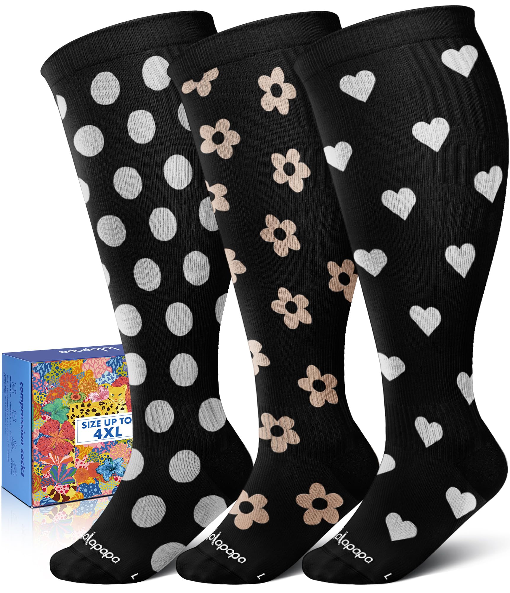Stylish Design & Everyday Versatility: Function meets fashion with Lalapapa! Our 3-pair set features playful, stylish patterns that elevate your wardrobe while delivering the benefits of compression. Perfect for work, travel, workouts, or simply lounging at home, these socks support your lifestyle with a touch of flair. From nurses and teachers to travelers and athletes, take every step with confidence and comfort