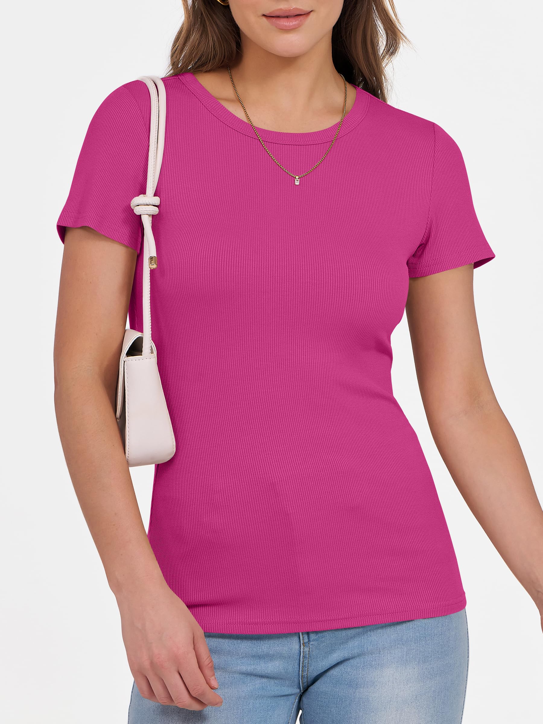 Features - Get summer-ready with our comfy and soft knitted fabric, perfect for all occasions. Our short sleeve crew neck design is versatile - wear it to school, the gym, the beach, or casual daily wear. The slim fit highlights your perfect figure, making you feel confident and stylish wherever you go. Comfortable, lightweight, and oh-so-flattering, our basic summer slim tee is an essential addition to your wardrobe.