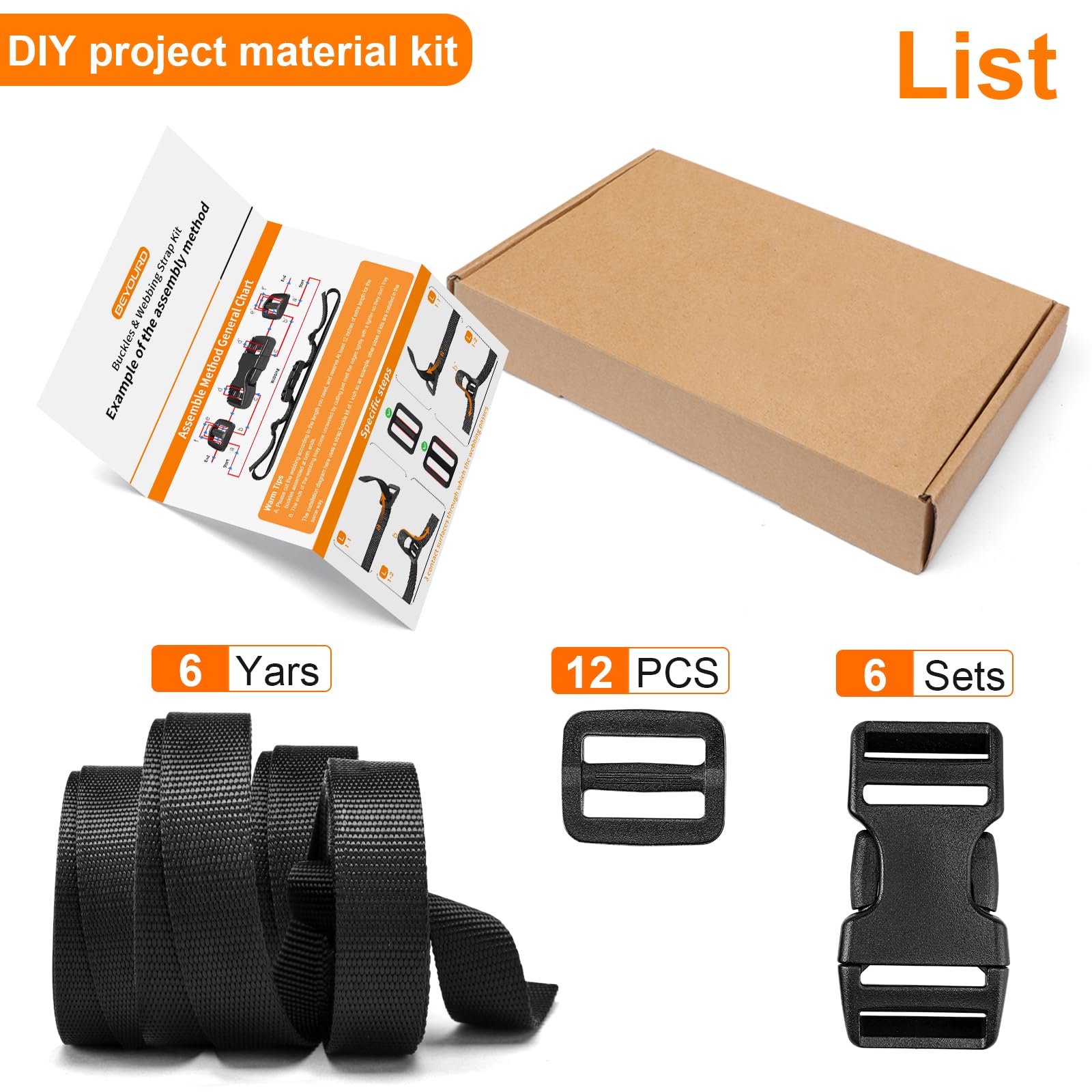 [Complete Strap & Buckles Set] Includes 6 yards of high-strength webbing measuring 0.05'' in thickness, 6 pack buckles for strap, and 12 PCS tri-glide slide clips. used for DIY projects
