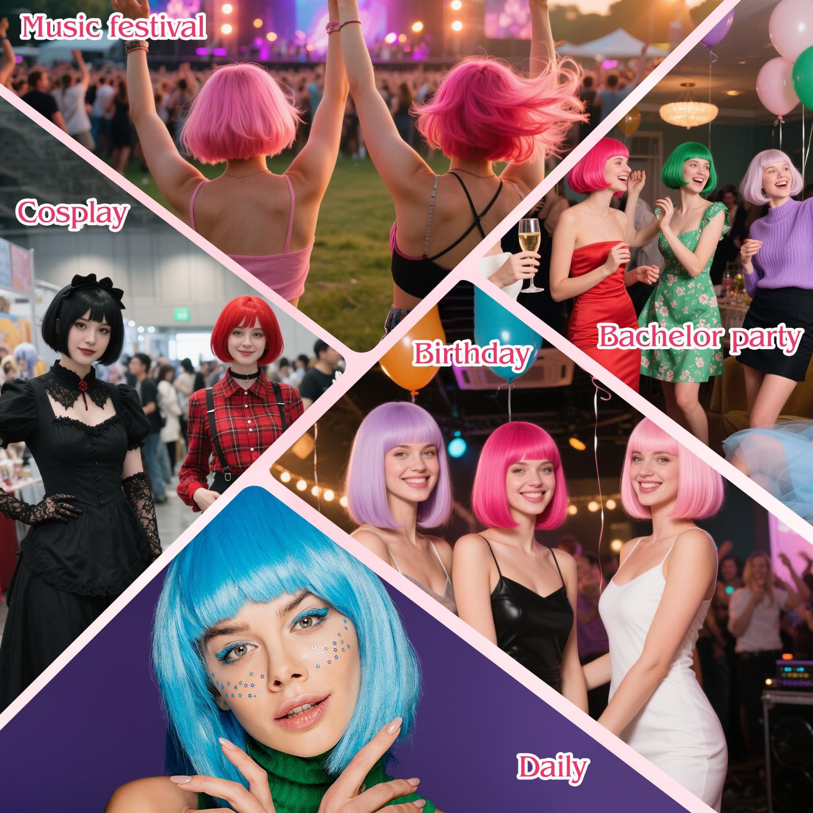 Great Gift for Women: Our short hair wigs are natural and realistic, pretty and feminine. The bob hairstyle is suitable for any face. This colorful wigs are a good choice for your girlfriend, mother, daughter or female friends, whether they are attending a fancy dress, bachelorette party, Halloween costume party, anime show, cosplay theme party or daily life