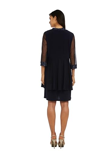 Description Radiate confidence and elegance in this beautifully coordinated -piece dress set featuring a sleek knee-length sheath dress paired with a sheer 3/4 sleeve jacket. The jacket boasts sheer paneling and glitter-trimmed borders and cuffs that add just the right amount of sparkle. The softly scooped neckline and tailored fit of the dress flatter the figure, while the lightweight overlay jacket adds graceful movement and coverage. Ideal for weddings, celebrations or formal daytime gatherings, this ensemble brings together sophistication and comfort in one effortless look.