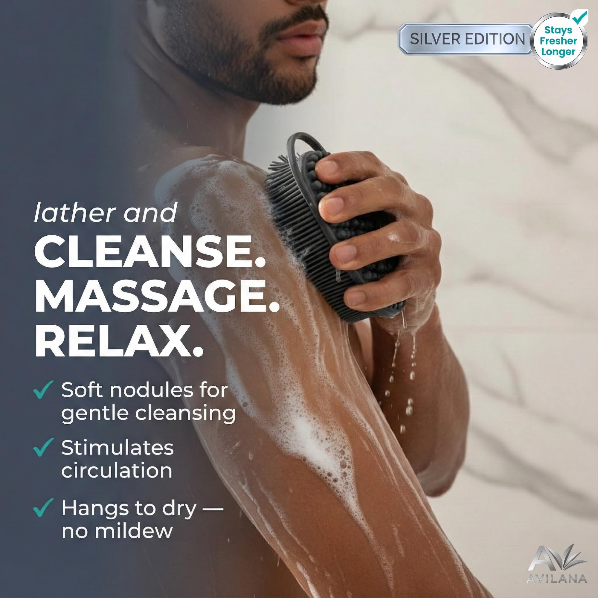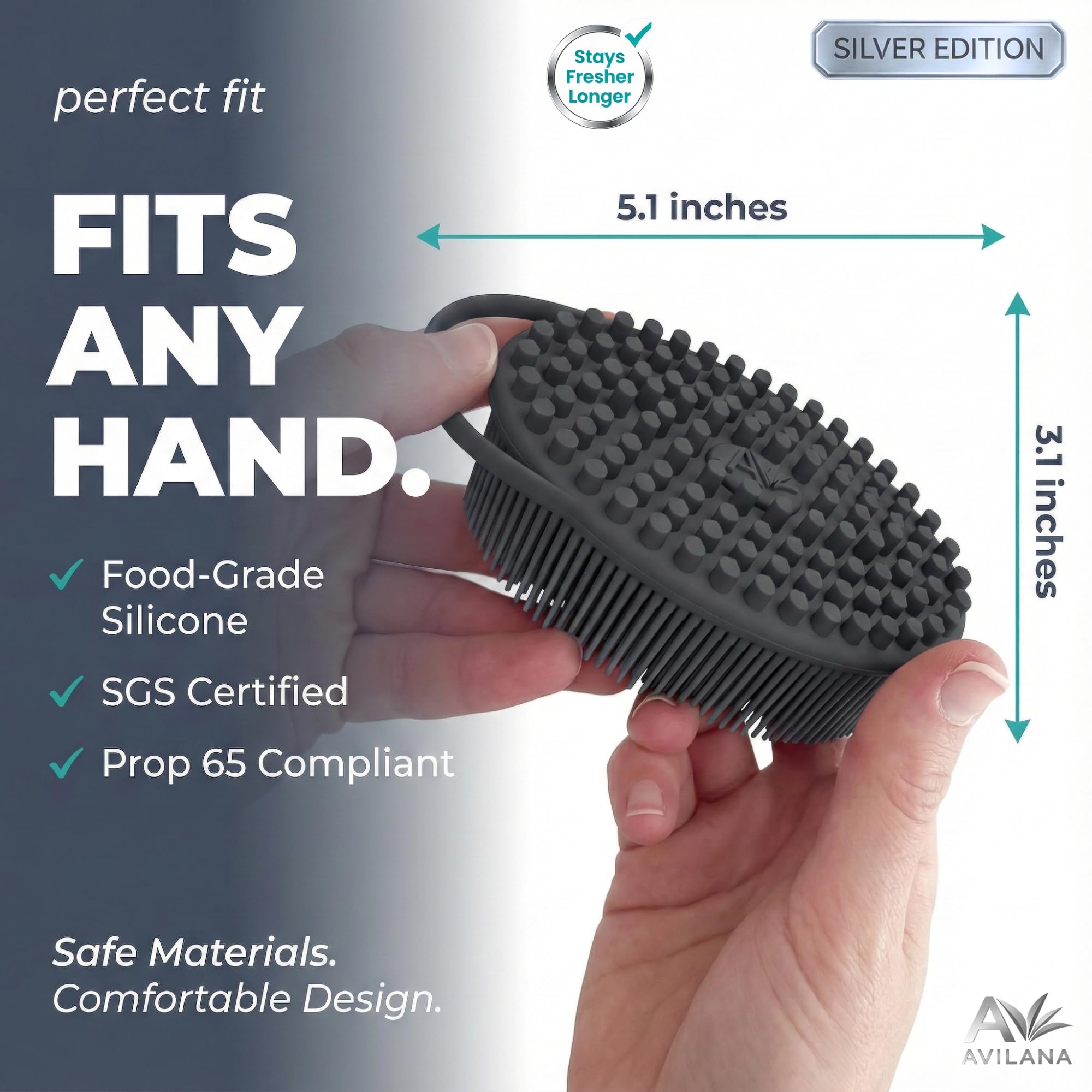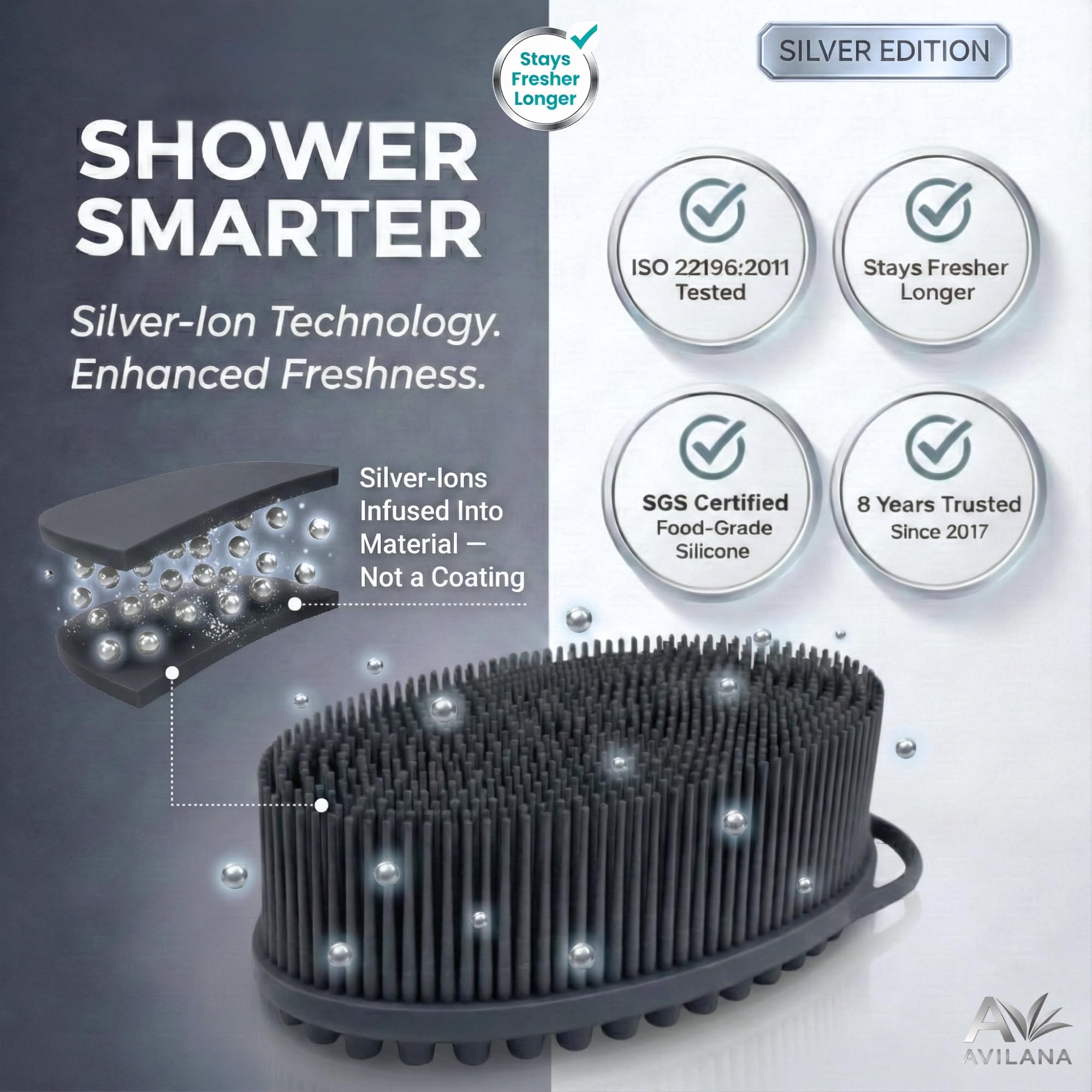★ SHOWER SMARTER — SILVER EDITION: WORTH THE UPGRADE — Why choose Silver Edition? Our premium silver-ion infused silicone is ISO 22196:2011 tested for enhanced freshness protection. While regular scrubbers develop odors in weeks, Silver Edition is engineered to resist that for 4-6+ months. The upgrade for those who want the best. Since 2017.