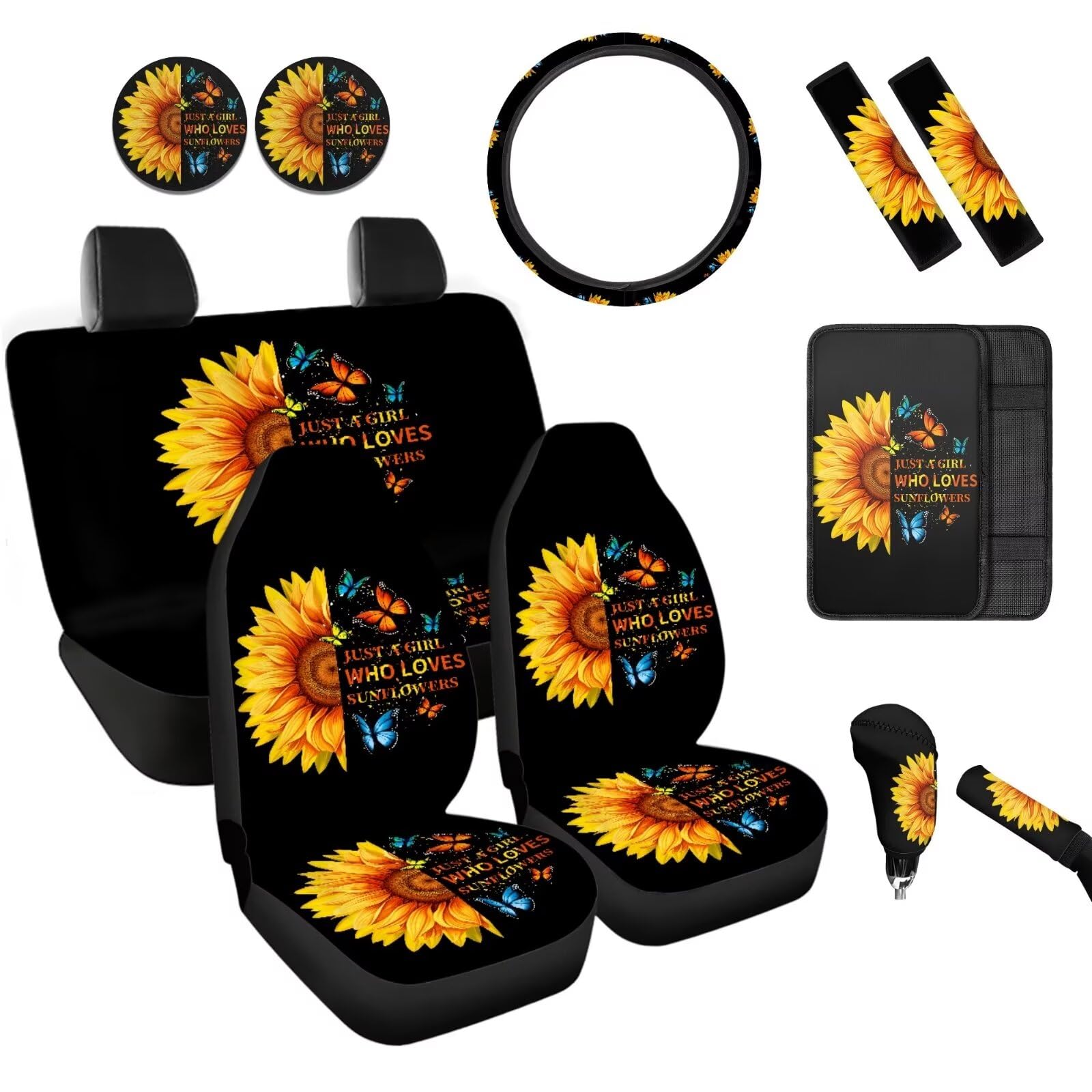 12 Pieces Car Interior Accessories Decoration for Womens Mens PACKING:2 Pieces front Front Seat Covers+1 Pieces Rear Backrest Cover+1 Pieces Rear Bottom Bench Cove+1-piece Car Gear Shift Knob Cover + 1-Piece Car Handbrake Brake Protector+1 Pieces Steering Wheel Cover+2 Pieces Shoulder Seat Belt Pads+1 Pieces Center Console Armrest Pad+2 Pieces Car Cup Our Promise: Thanks for your business! We will always strive for 100% customer satisfaction. If you have any questions, please don't hesitate to contact us directly!