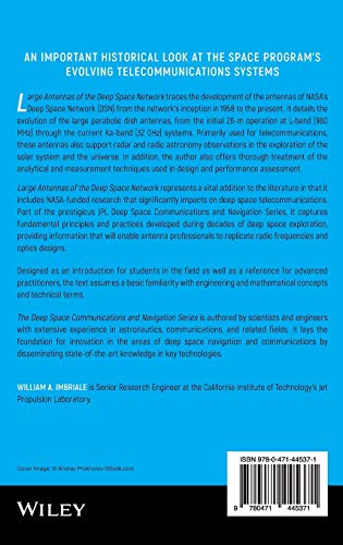 An important historical look at the space program's evolving telecommunications systems Large Antennas of the Deep Space Network traces the development of the antennas of NASA's Deep Space Network (DSN) from the network's inception in 1958 to the present. It details the evolution of the large parabolic dish antennas, from the initial 26-m operation at L-band (960 MHz) through the current Ka-band (32 GHz) systems. Primarily used for telecommunications, these antennas also support radar and radio astronomy observations in the exploration of the solar system and the universe. In addition, the author also offers thorough treatment of the analytical and measurement techniques used in design and performance assessment. Large Antennas of the Deep Space Network represents a vital addition to the literature in that it includes NASA-funded research that significantly impacts on deep space telecommunications. Part of the prestigious JPL Deep Space Communications and Navigation Series, it captures fundamental principles and practices developed during decades of deep space exploration, providing information that will enable antenna professionals to replicate radio frequencies and optics designs. Designed as an introduction for students in the field as well as a reference for advanced practitioners, the text assumes a basic familiarity with engineering and mathematical concepts and technical terms. The Deep Space Communications and Navigation Series is authored by scientists and engineers with extensive experience in astronautics, communications, and related fields. It lays the foundation for innovation in the areas of deep space navigation and communications by disseminating state-of-the-art knowledge in key technologies.