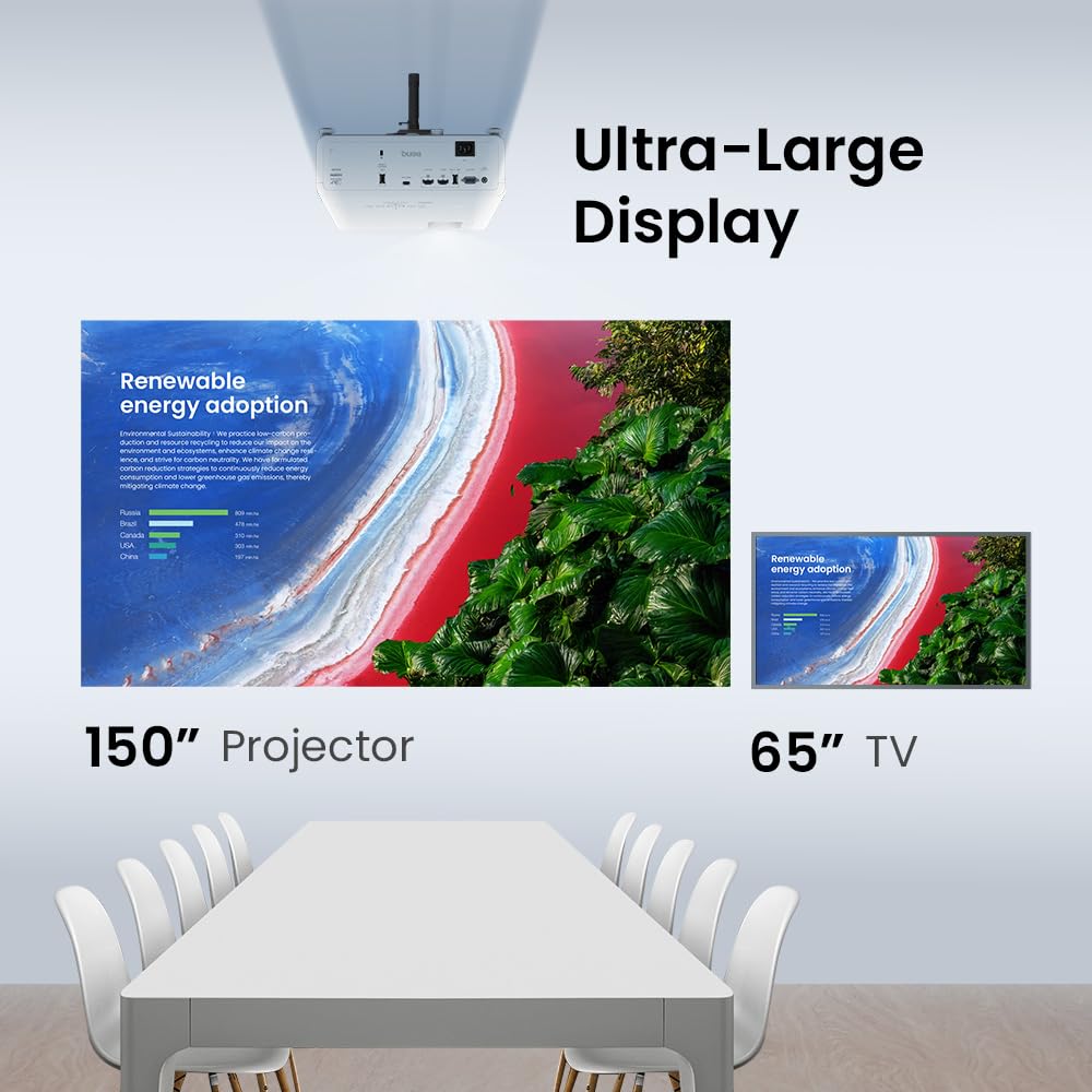 SMART POWER SAVINGS: BenQ SmartEco technology adjusts light source power intelligently without sacrificing image quality, saving up to 60% more energy than traditional Eco Mode. Laser technology conserves energy an additional 23% compared to traditional mercury lamps.