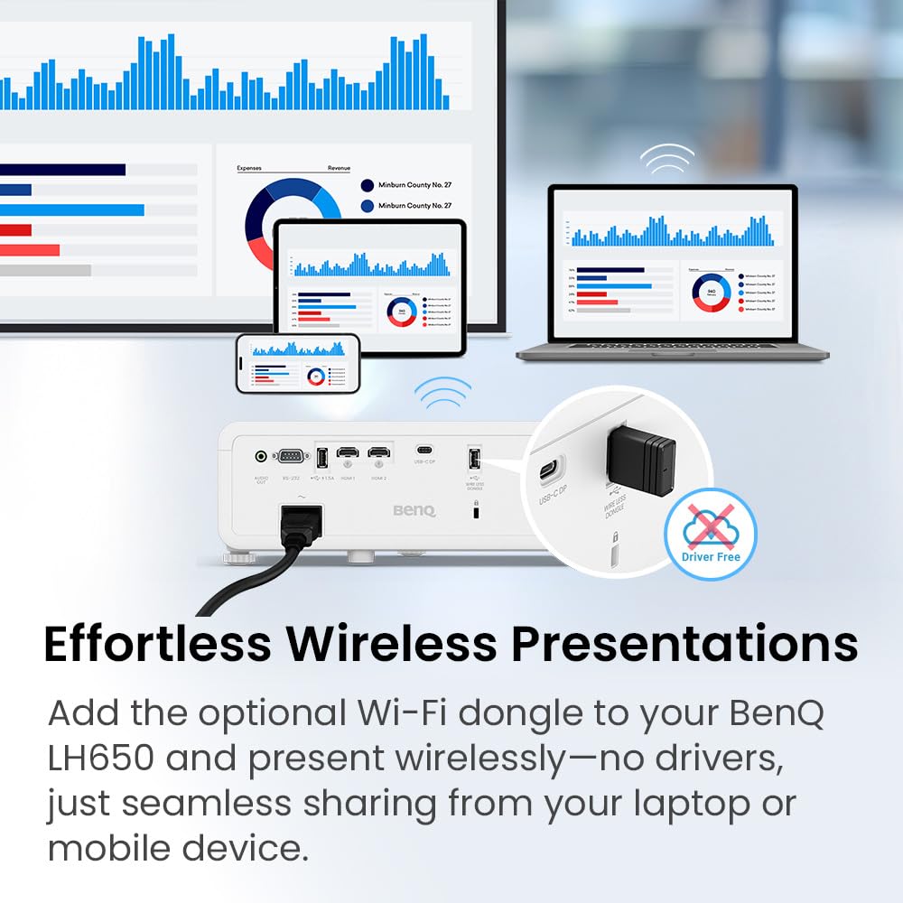 DRIVER-FREE WIRELESS CASTING: Wireless presentation capability with optional WIFI dongle