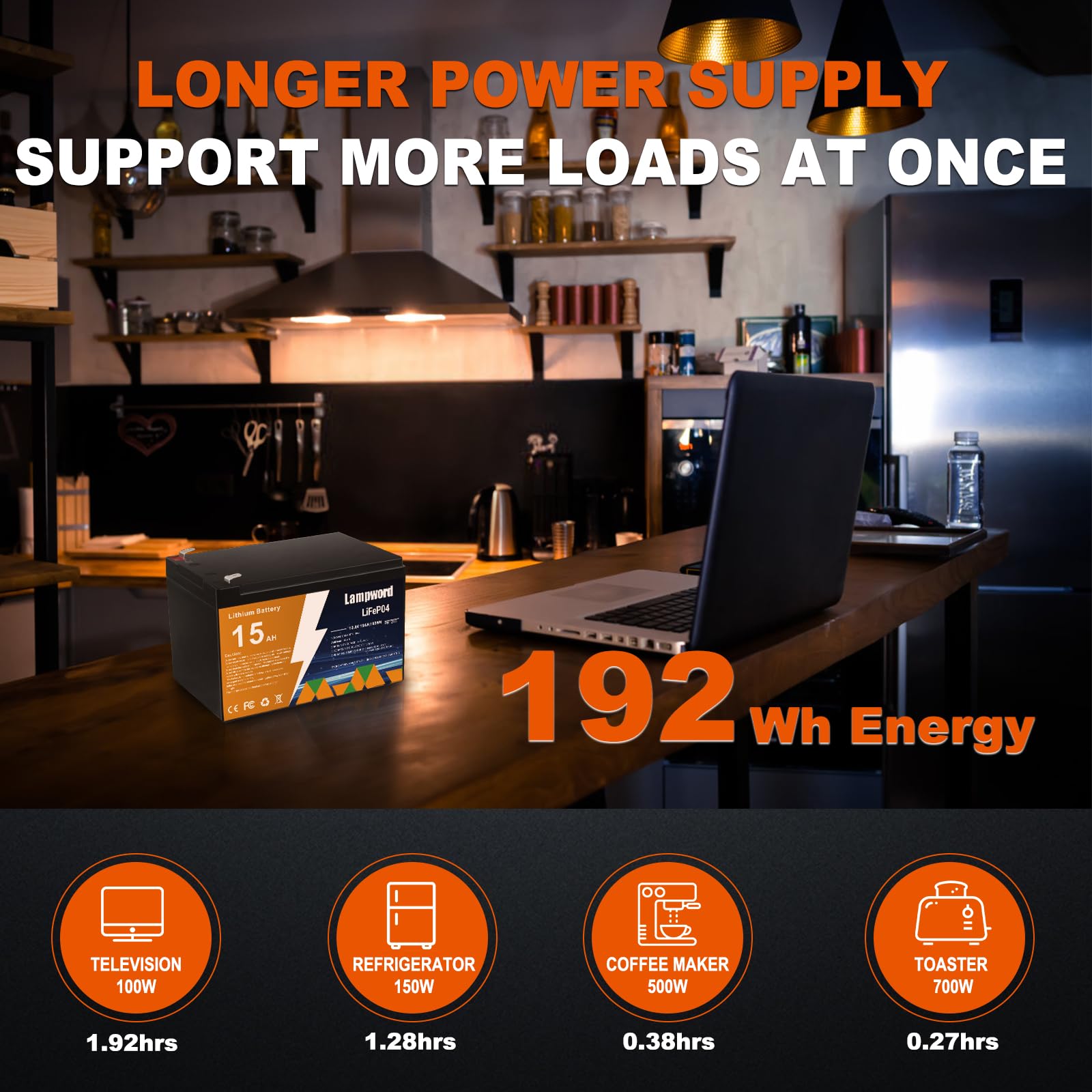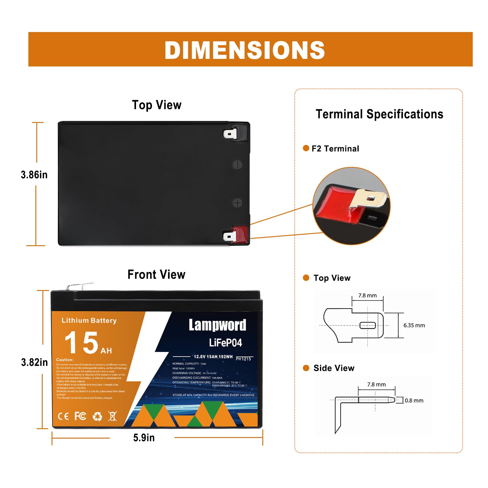 【Widely Uses】12 volt lifepo4 battery can be used in most areas such as: Lighting,RV/outdoor camping, ups, solar, wind energy battery,Trolling Motor, Golf Cart, kids ride on toy car, Fish finder, Kayak, Home Alarm, Cellular remote camera, Security Systems and so on.
