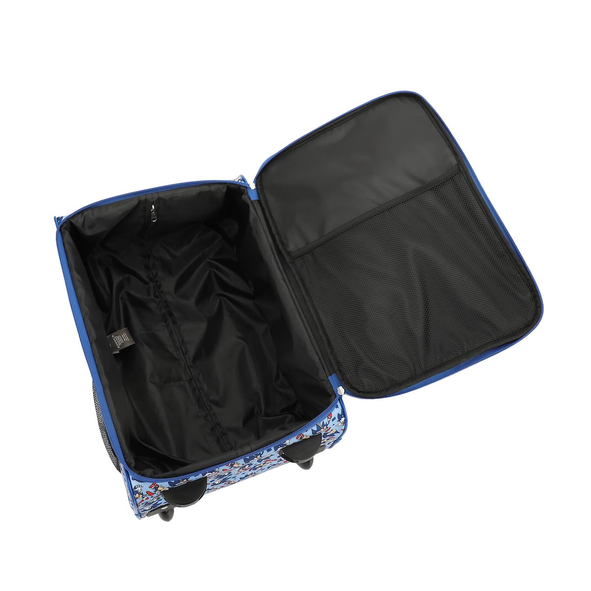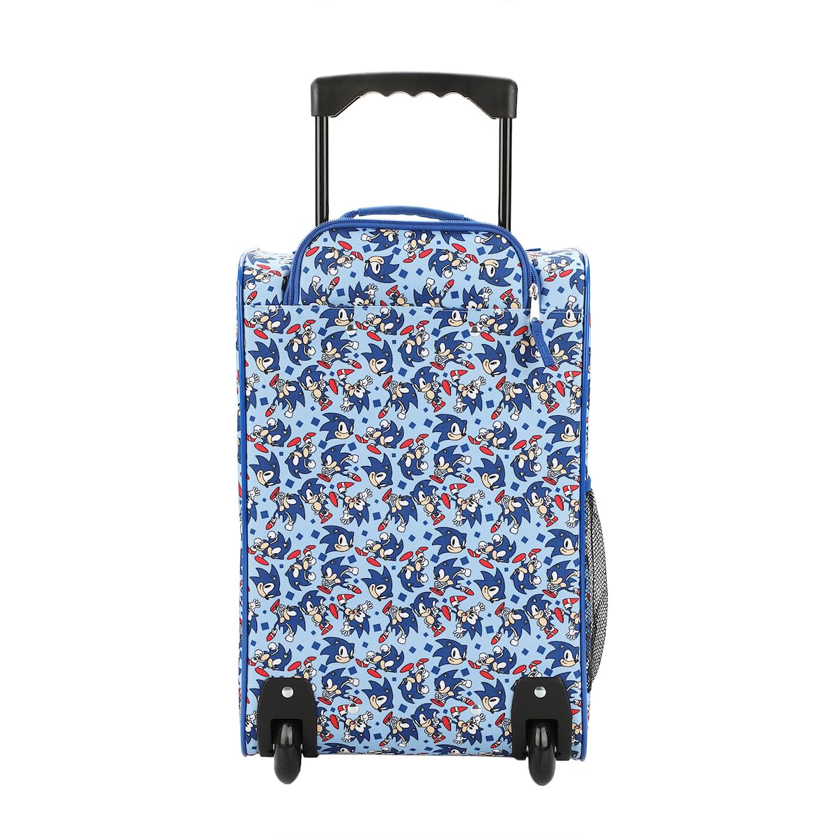 Description Take your travels to the next level with this Sonic the Hedgehog soft luggage. Featuring an image of Sonic giving a thumbs up on the front and an all-over print of Sonic on the sides, this luggage is perfect for fans of the game. The bag includes smooth-rolling wheels, a retractable trolley handle, a large front zippered pocket, and side mesh pockets for extra storage. Made with durable 600D materials, it's easy to care for with spot cleaning.