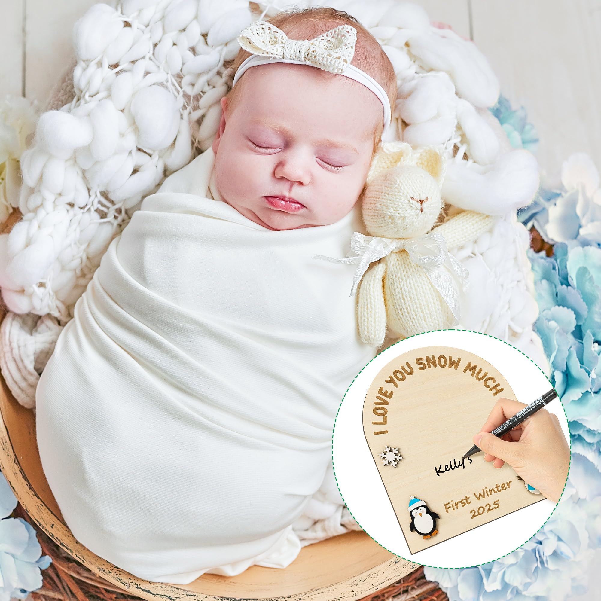 Proper Size: This 3d winter wooden milestone card measures 9.8 x 8.1 inches (25 x 20.6 cm), ideally adapting to the baby's handprint or footprint, which can be harmoniously matched with the wooden sign without being too obtrusive.