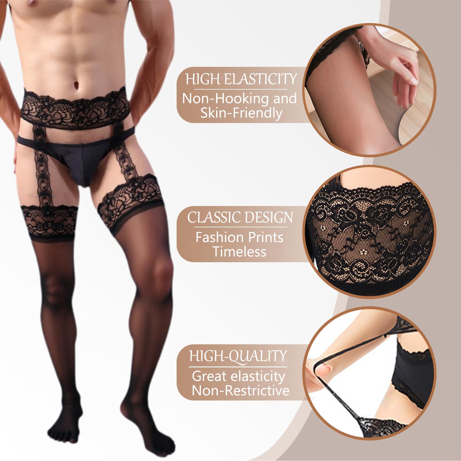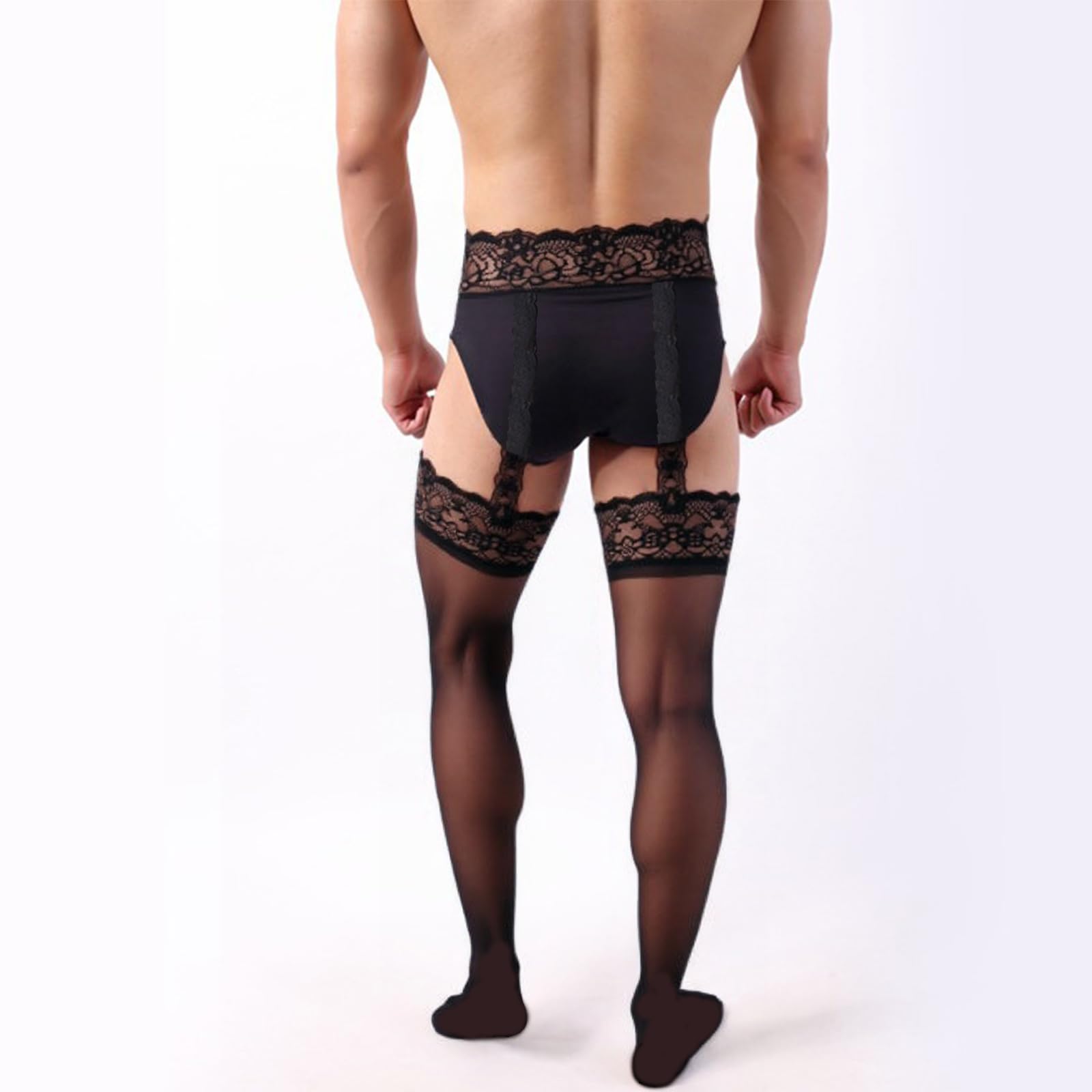 【Garter & Stockings Appeal】Adjustable mens garter lingerie pairs with men stockings lingerie for playful, sexy flair.