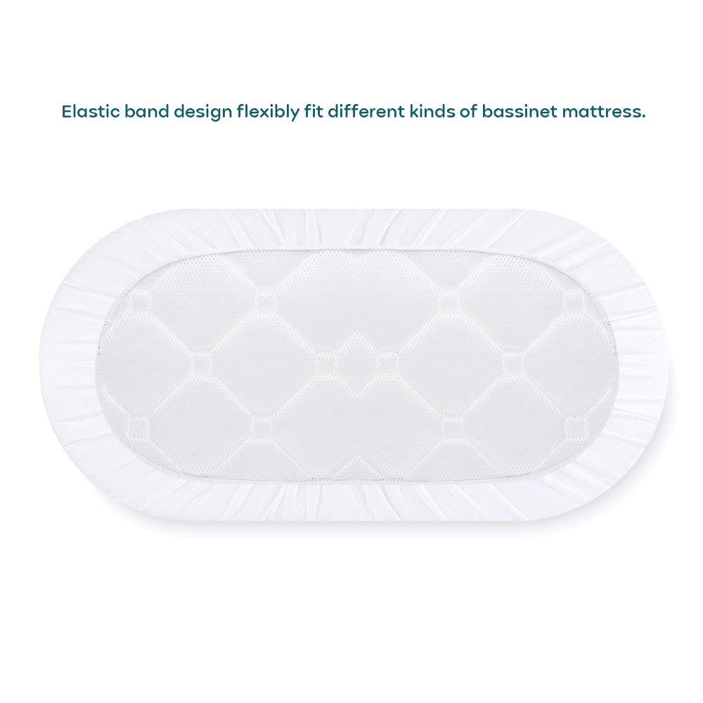 🌙FLEXIBLE FIT - Measures 32''x16'', designed specifically to standard oval, round, hourglass, and small rectangle shaped bassinet mattress. Deep pockets make sure the mattress cover universal fit mattress up to 4 inch thick.