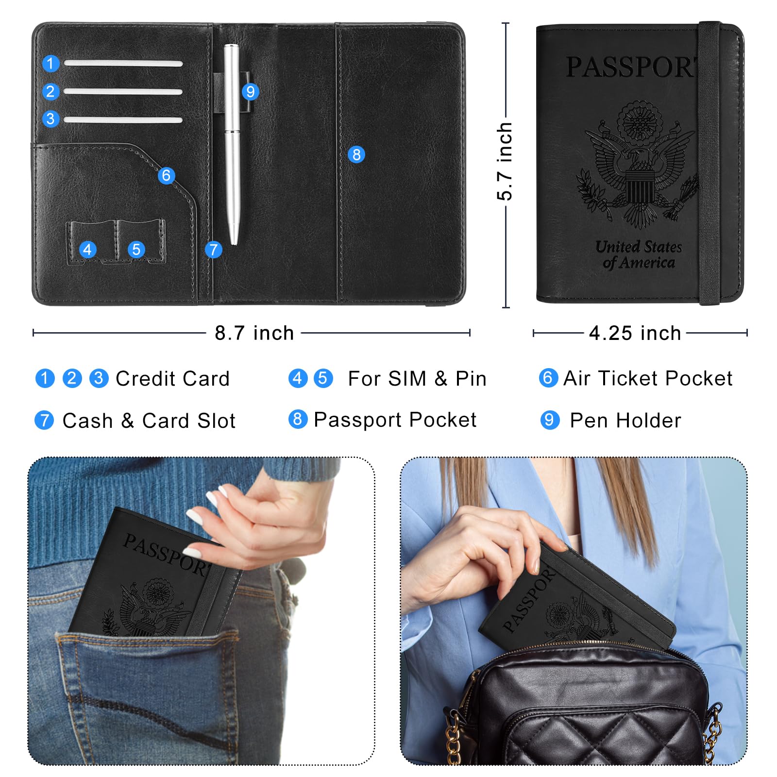 Efficient Travel Organizer: Stay organized with dedicated compartments for your passport, boarding pass, credit cards, and cash. Designed for maximum convenience, it allows easy access to essential documents while keeping them secure and protected in this versatile travel wallet.