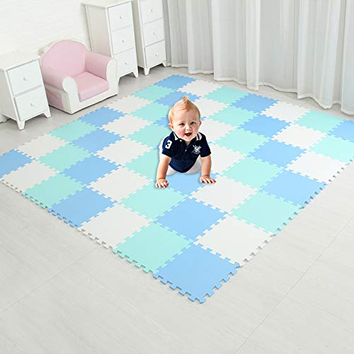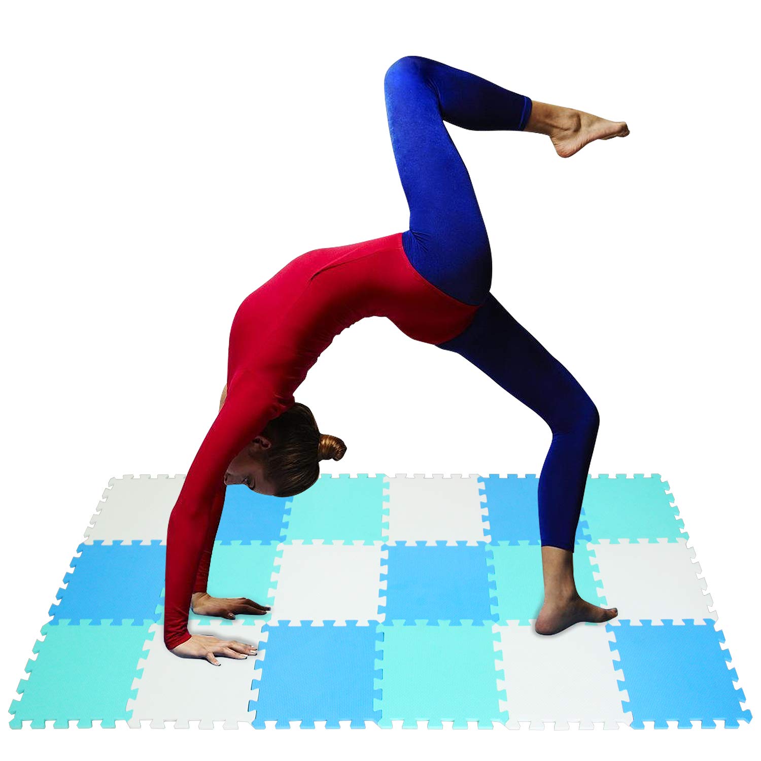 Cover area: 86CM x 170CM( ±1CM) / approx. 1.46 SQ. M,one sets 18pcs,(300mm x 300mm x 10mm). Package includes 6 WHITE,6BLUE and 6GREEN interlocking foam tiles, making it a perfect workout and training accessory.