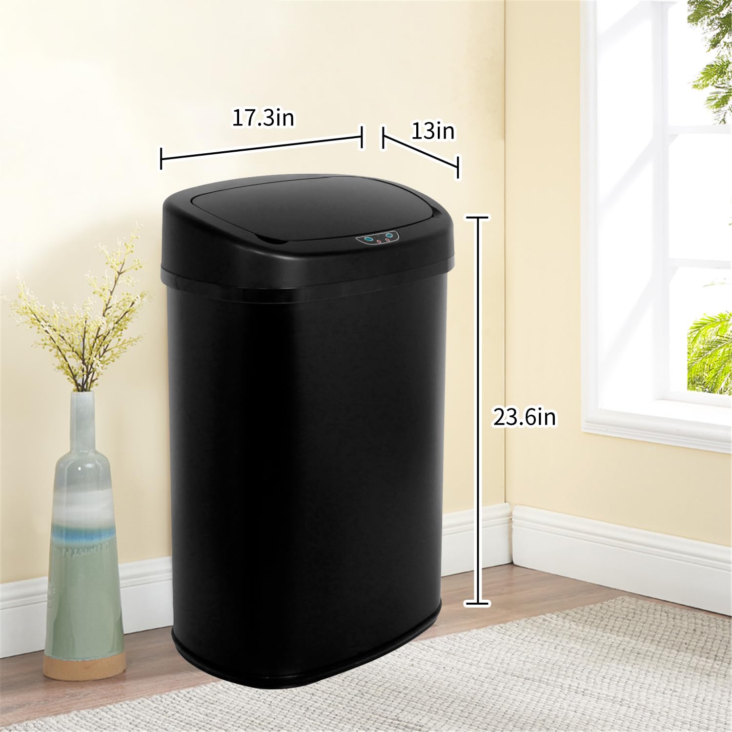 ABOUT OUR TRASH CAN SIZE: -- To make the trash can lighter and more compact, we didn't design the inner barrel. The 13 gallon trash can without an inner bucket will be shorter and small than the mainstream 13 gallon trash can with an inner bucket on the market. If you like our automatic trash can style, please reconsider whether you can accept its short size before you buy it