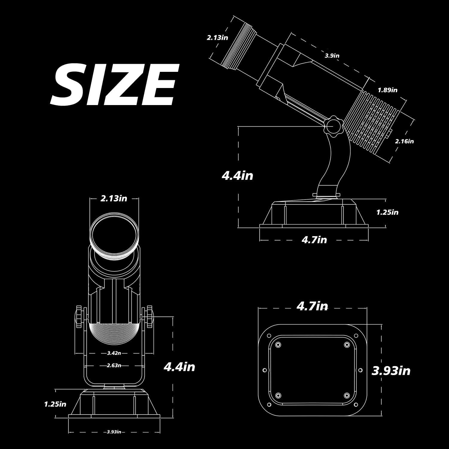 [Lamp beads and body] Integrated 15W LED chip, which can provide high brightness; built-in rust-proof aluminum housing and high-strength structure, with a service life of up to 35,000 hours [Fan radiator]Built-in strong heat dissipation and ultra-quiet fan radiator, resulting in longer product life. [Installation scenario]Installed on a wall, floors, and ceiling for a projection range up to 18ft in dark or dim areas, up to 10ft in bright area Scenes to be used]Use in store,showroom, clubs, hotel, company, Christmas, Halloween, weddings, family parties etc.