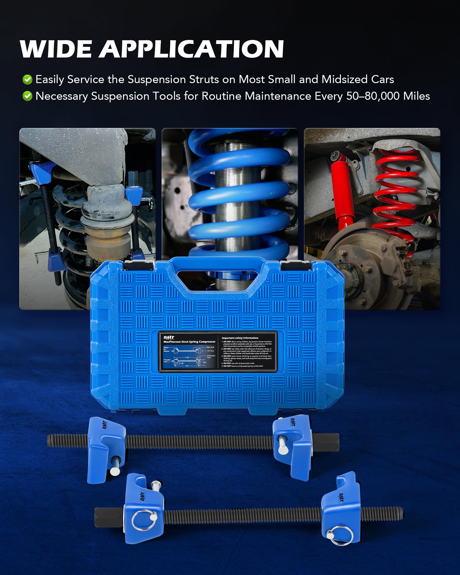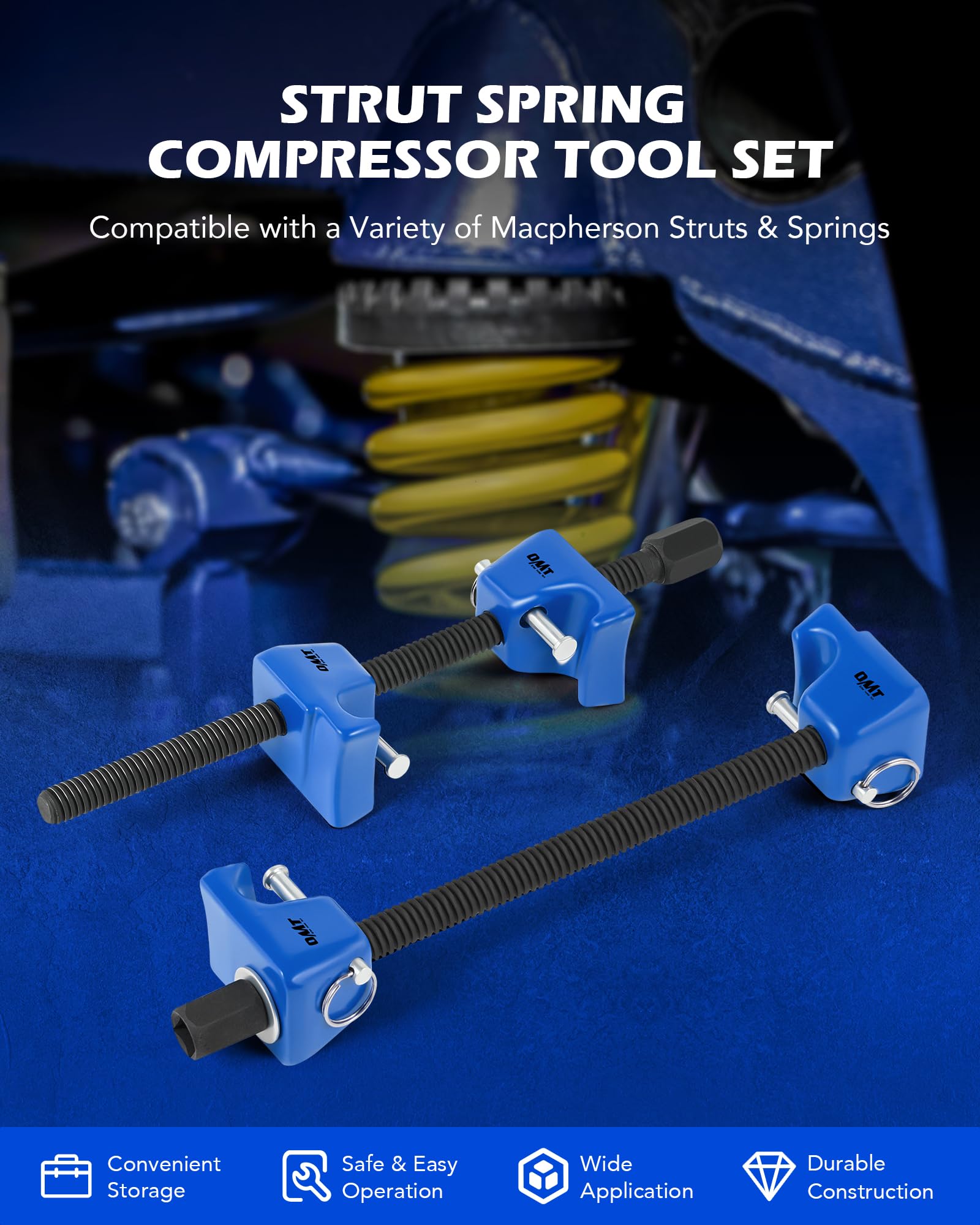Compact & Portable: This shock spring compressor tool set comes with a blue blow-molded case, keeping parts organized and easy to carry, store, and access, ensuring you are always prepared for your next repair job