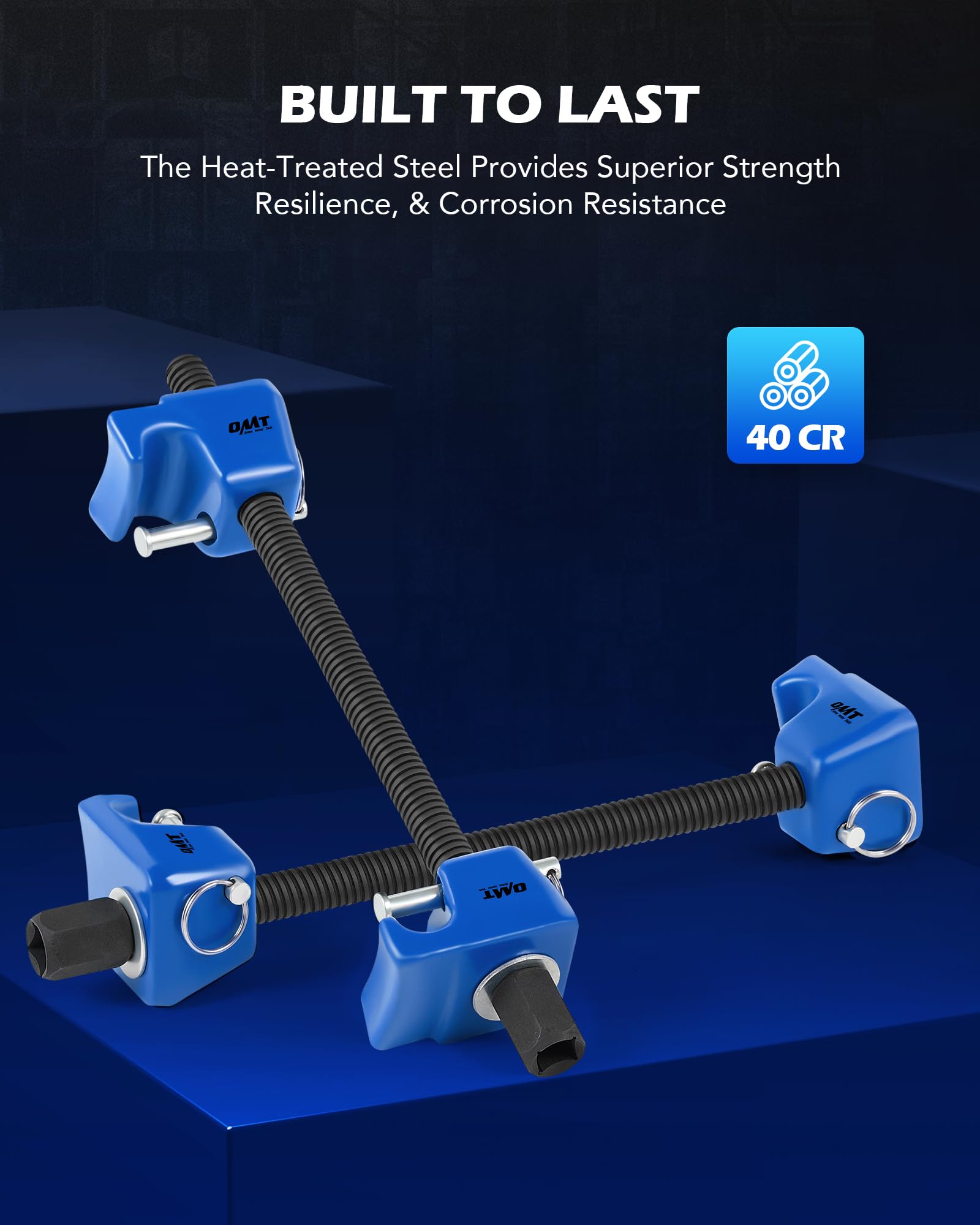 Built to Last: Our pair of coil spring compressor tools features high durability and corrosion resistance, even under punishing use, thanks to their heat-treated 40 Cr steel construction, black oxide finish on the threaded rods, and galvanized end pieces