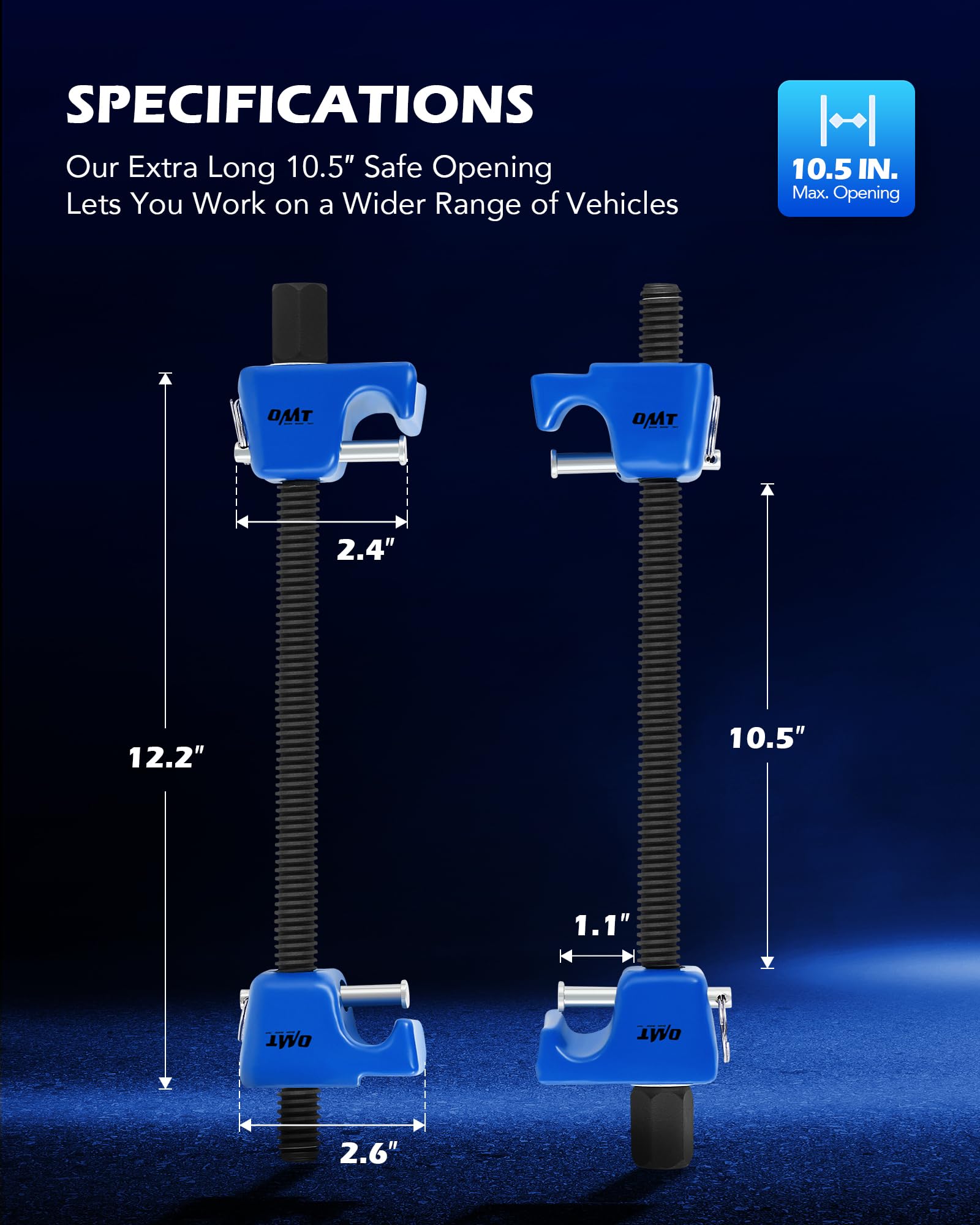 Ideal for Most Vehicles: Orion Motor Tech's spring compressor tool set with a 10.5" maximum jaw opening, is ideal for repairing damaged parts and maintaining suspension of the MacPherson struts and springs found in most small and medium-sized cars