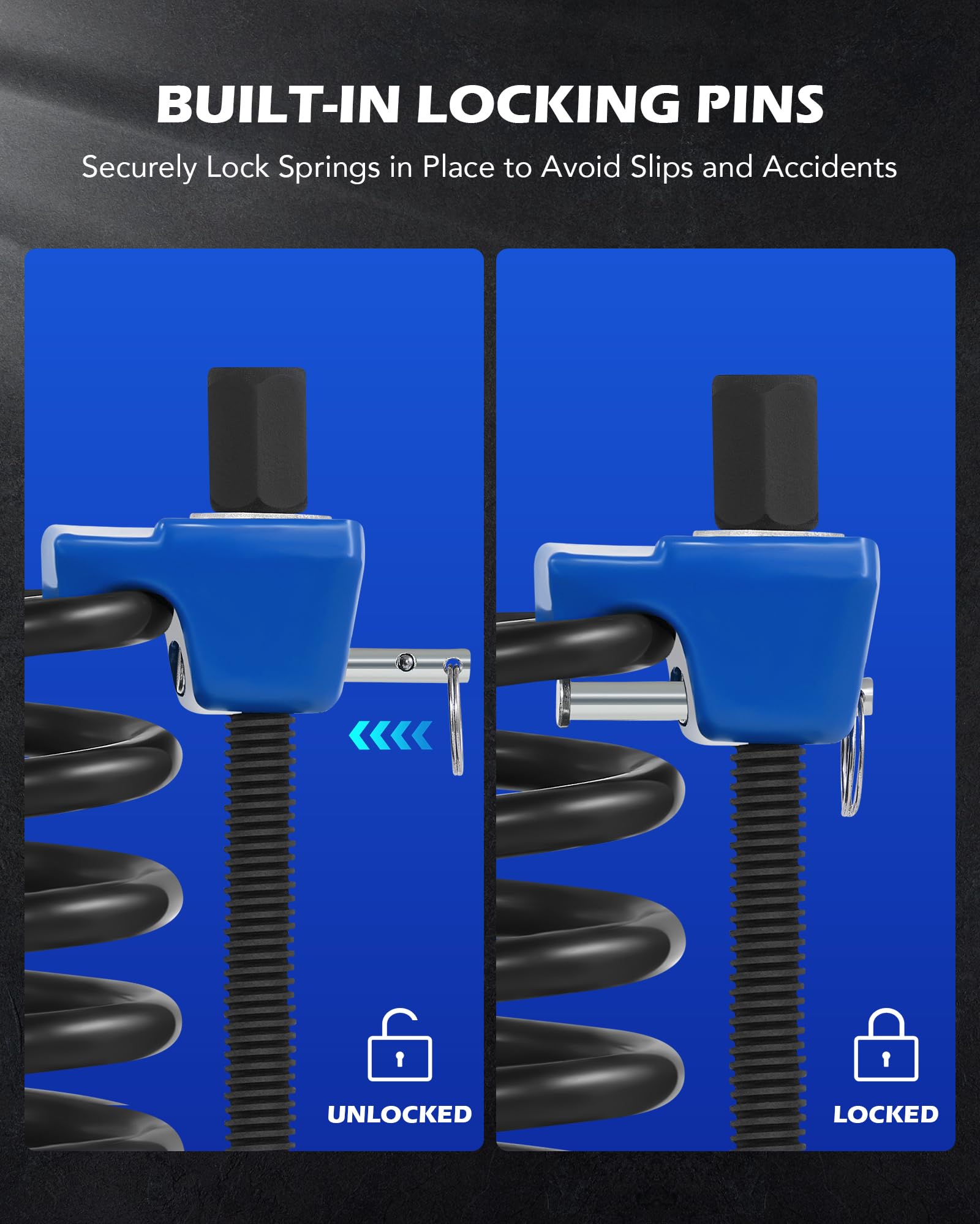 Secure Compression: The wide end pieces on these two automotive strut spring compressor tools quickly and easily lock onto your springs, maintaining a secure hold as you work; the built-in locking pins provide additional security and precision