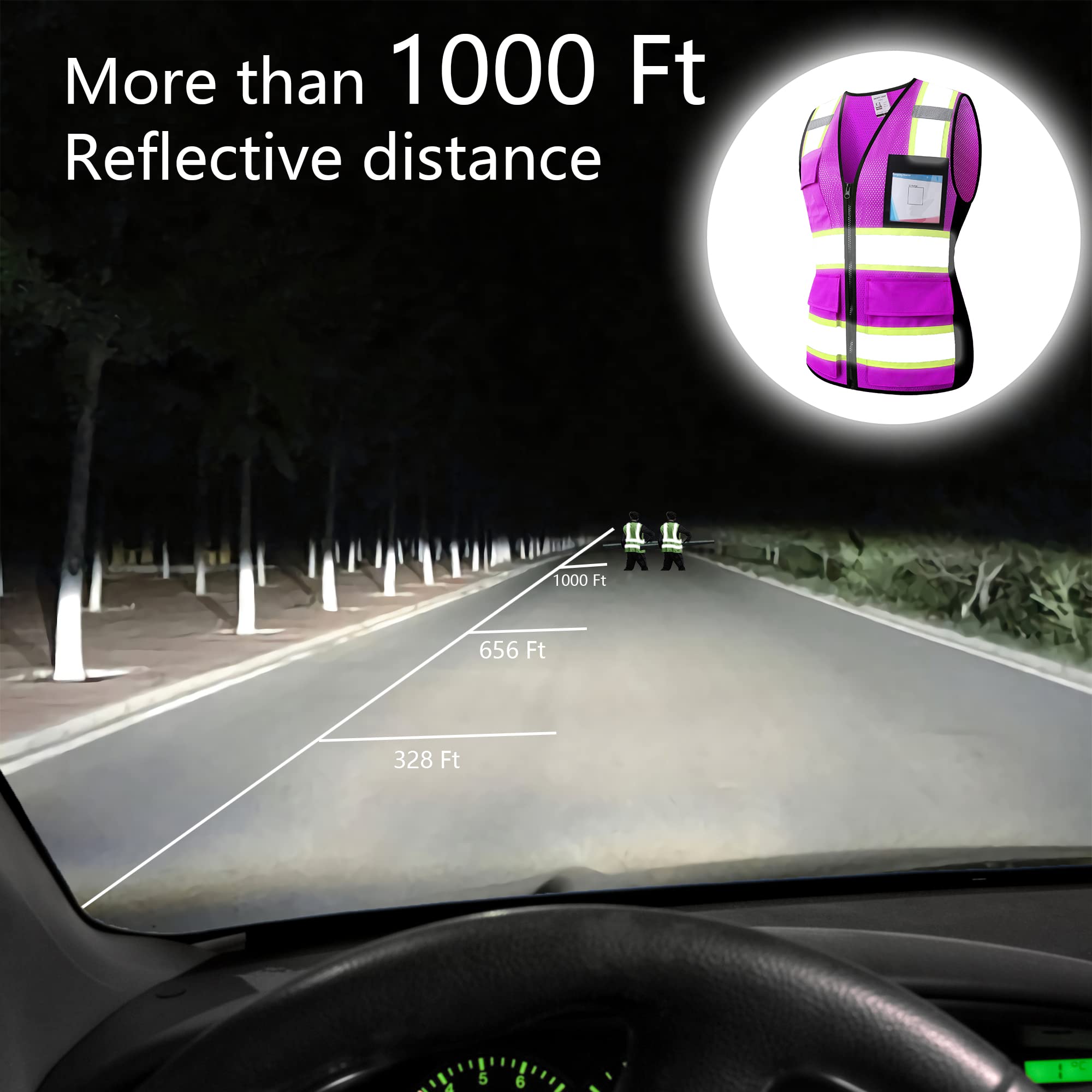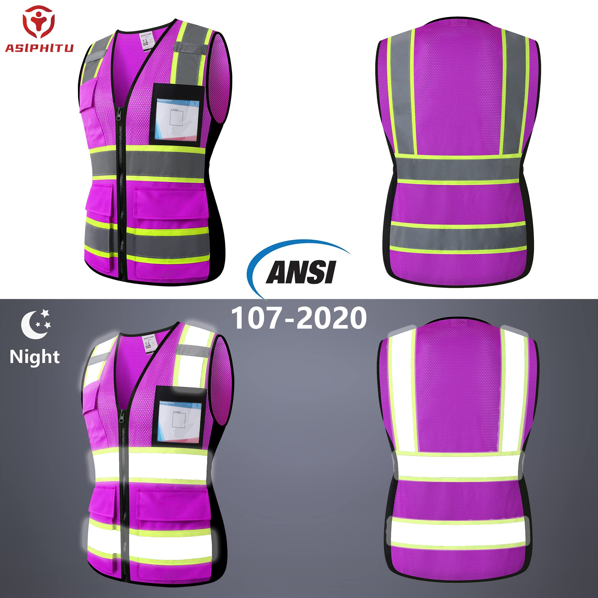 HIGH VISIBILITY: Asiphitu high reflective vest bring safety visible both day and night with the high visibility 2-inch wide high reflective silver tape.The safety vest for women raiders 360-degree reflective light waves to provide protection in any lighting condition while working or outdoors.