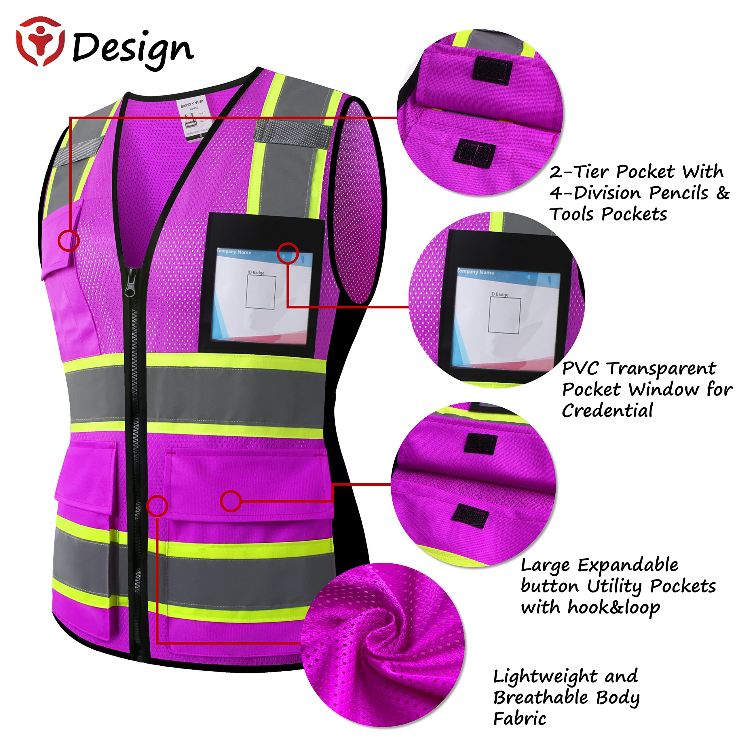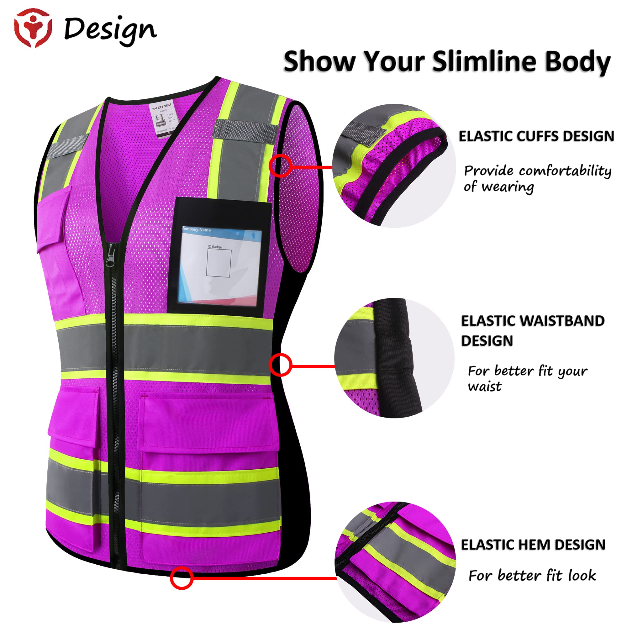 BREATHABLE MESH: 100% polyester mesh material. Hi vis safety vest for women is lightweight, comfortable, breathable, easy to carry, machine washable in cold water, and quick-drying. The safety vest sleeves, waist and tail are stretchable and retractable, giving you the ideal streamlined shape when you are working.
