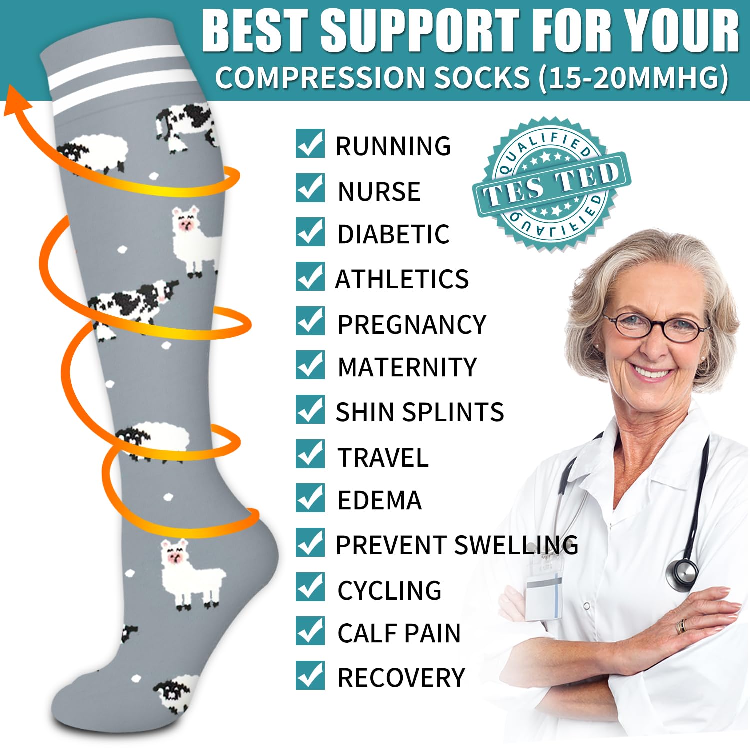 COMFORTABLE-Made from 85% Nylon and 15% Polyester.Our compression socks for women are incredibly soft,breathable,and moisture-wicking,provides a perfect composition between comfort and grip.High performance material and temperature control,keeping your muscles cool during workouts and warm during rest.It can gently wraps around feet,ankles,and legs to provide enough support to stimulate blood flow.Don't hesitate to wear compression socks for women daily.They can be a great relief!