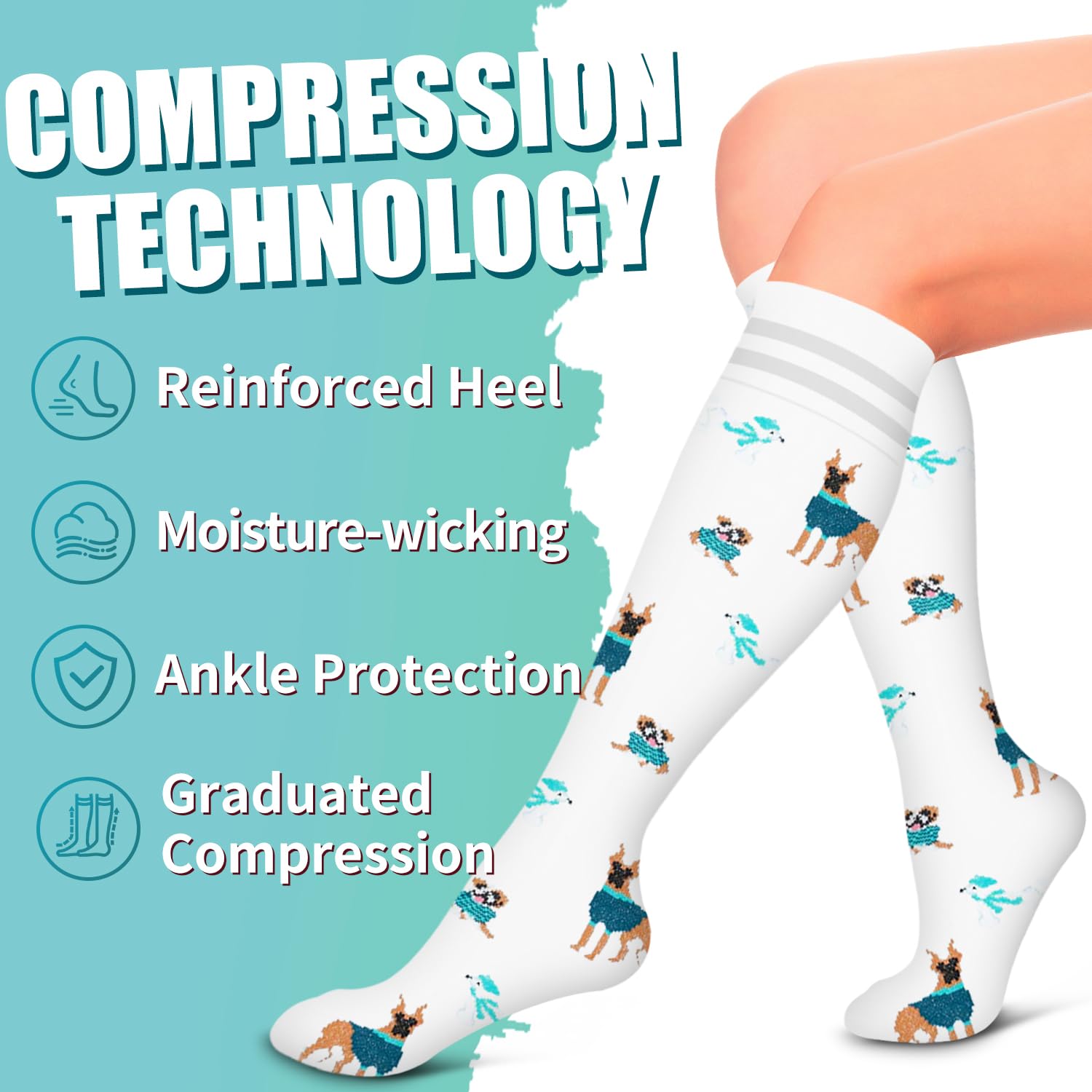 AMAZING EFFICACY-With a unique compression level that isn't too loose or too tight,it means you can wear our compression socks for women all day long comfortably.As they gently constrict the tissues and oxygenate the blood,they move waste fluids out,promoting ample circulation.Remove stress and stimulate every cell,reduce fatigue,soreness,cramping and prevent Varicose veins at the same time Ensure the healthy functioning of your circulatory system.Keep your legs feel fresher and more energized.