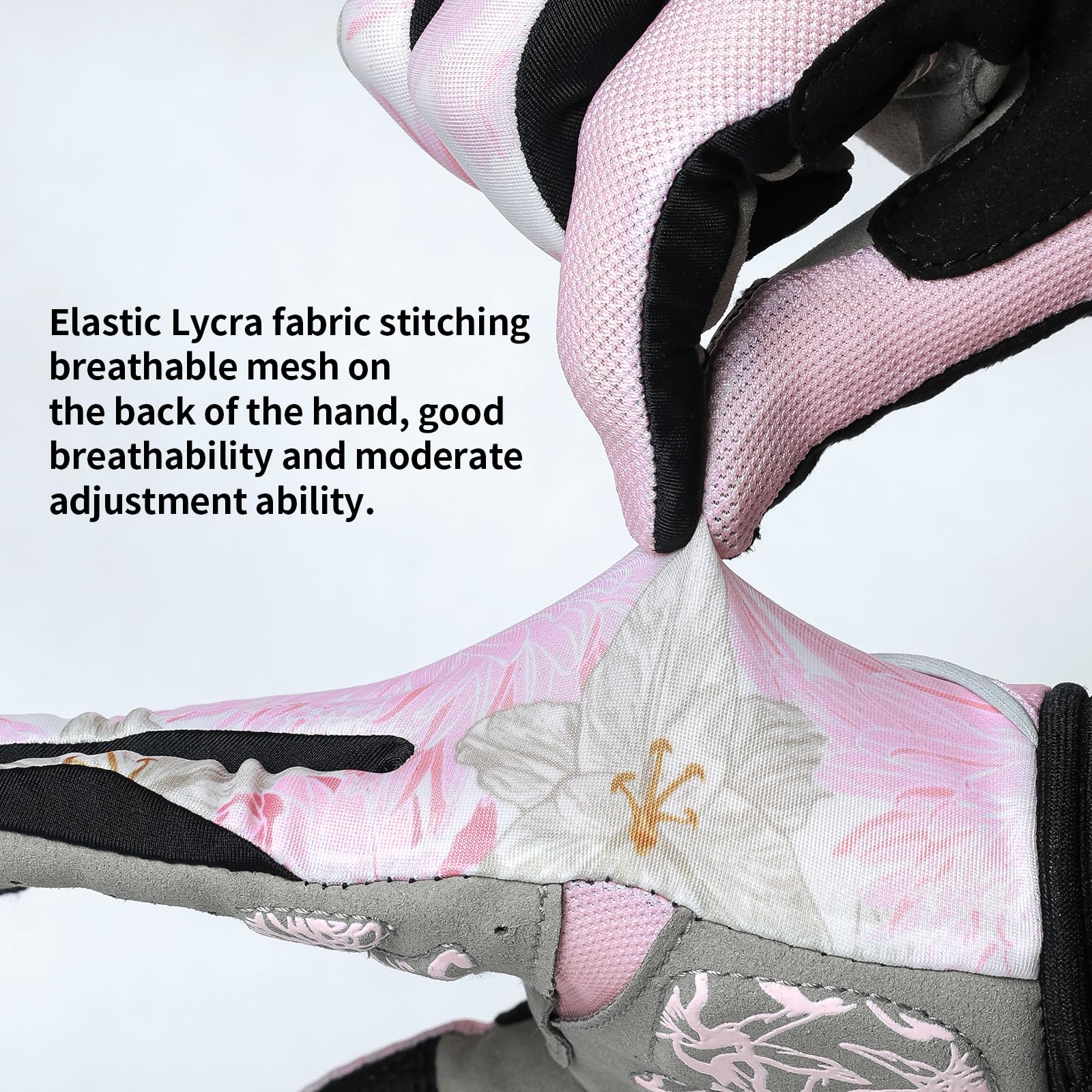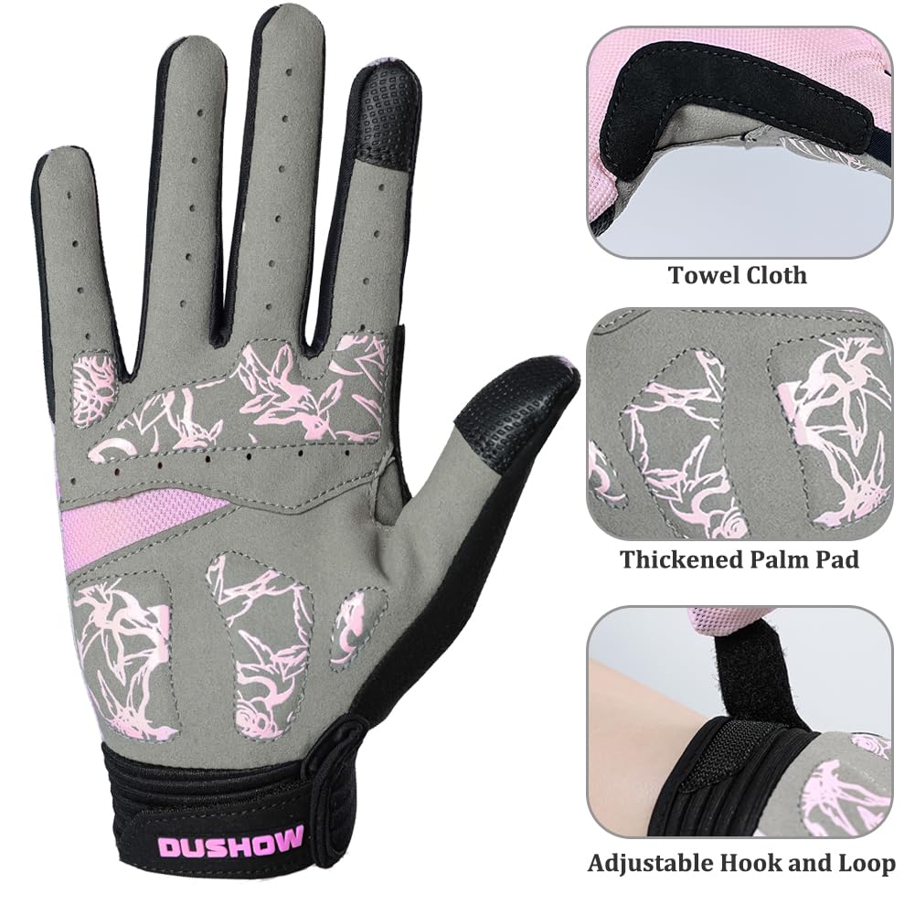 【UNIQUE DESIGN】---Elastic Hook and Loop strap around the wrist makes it easy to put on and take off.Towel cloth design on thumbs makes it easy to wipe away dripping sweat and keep your eyes on the road. Floral on gloves make it more fashion