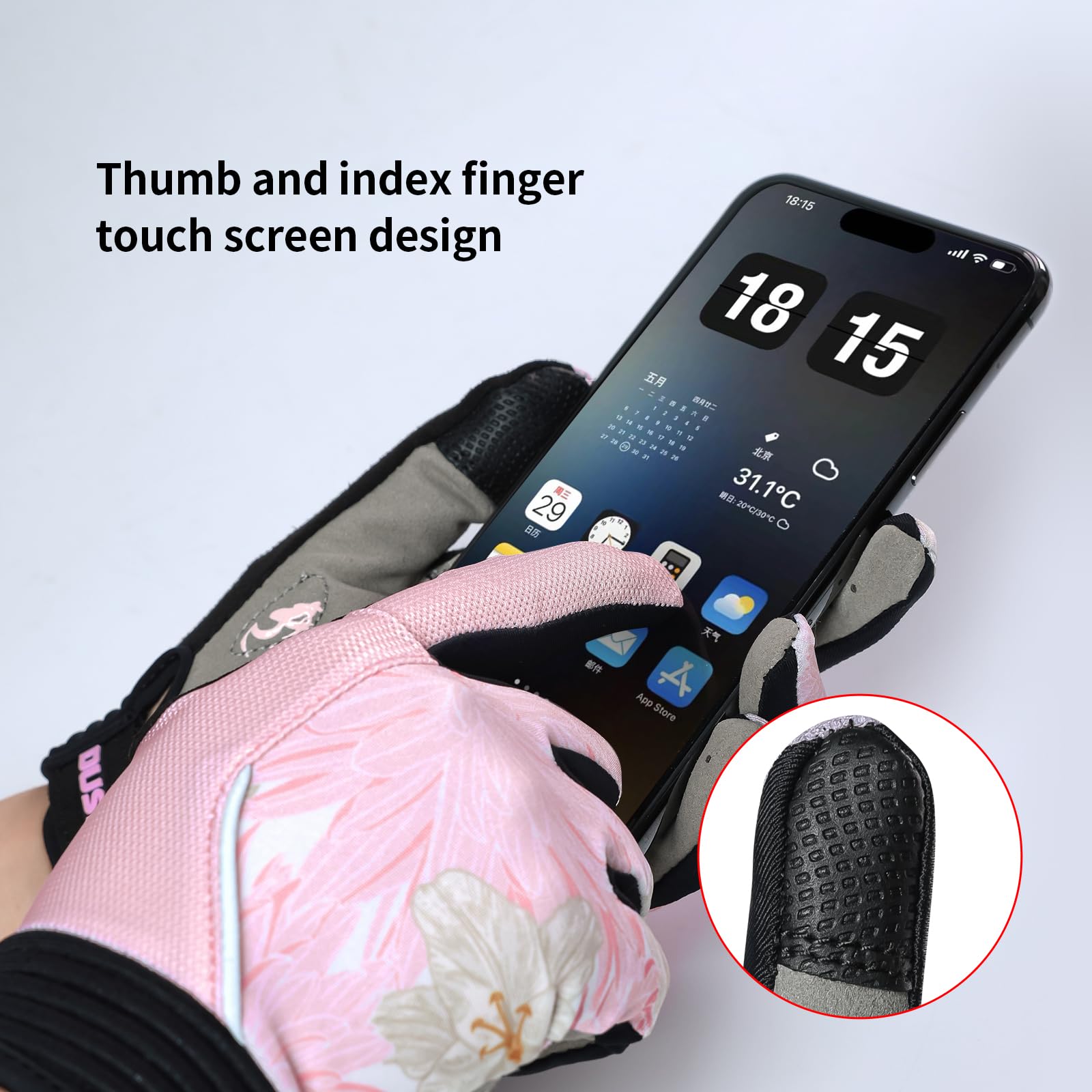 【TOUCH SCREEN GLOVES】Our bike gloves feature small touch sensitive pads on the Thumb and Index Finger,you can access to smartphones and take photos.Thumb and index finger adopt screen recognition,allowing you stay connected to your mobile device without taking off gloves